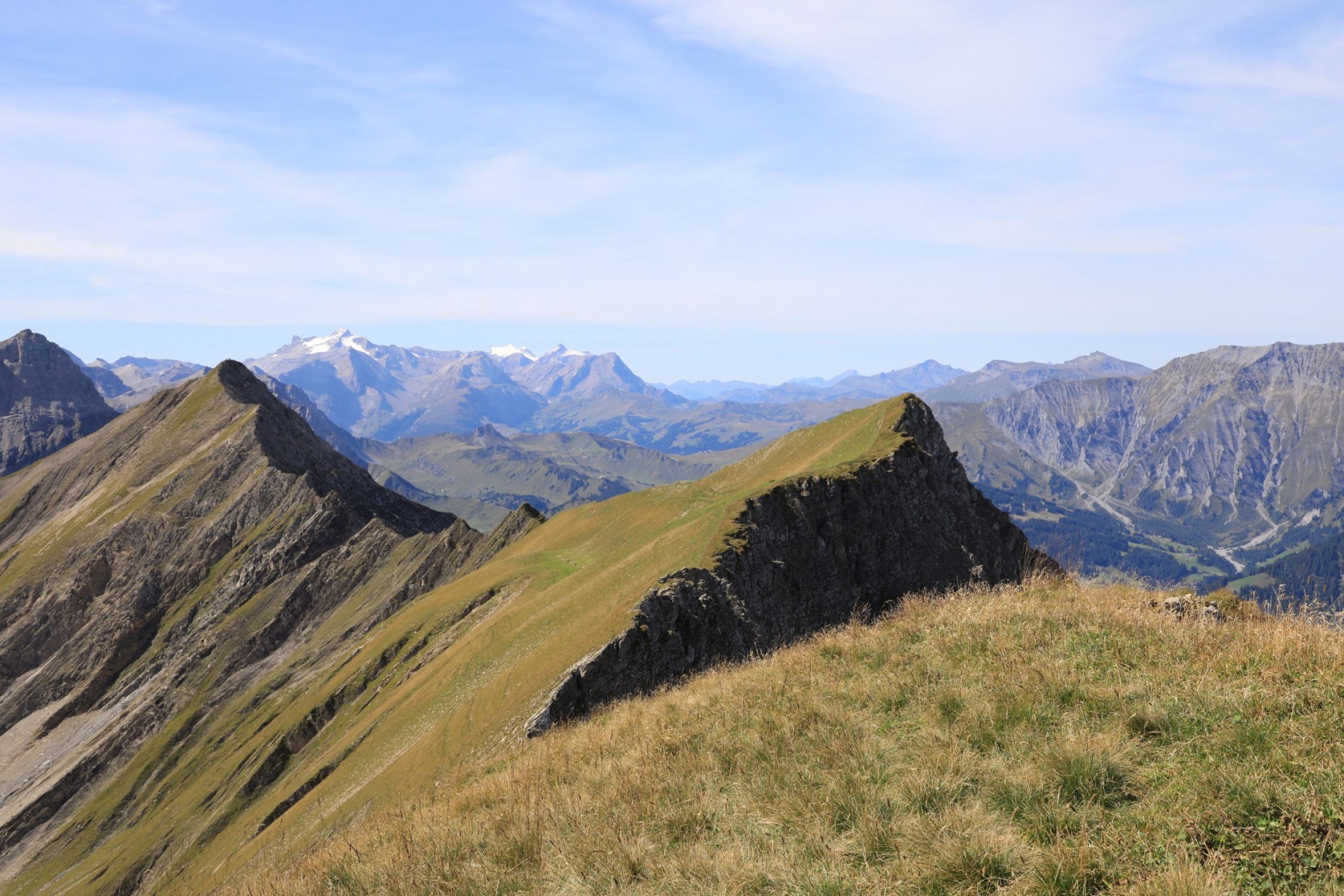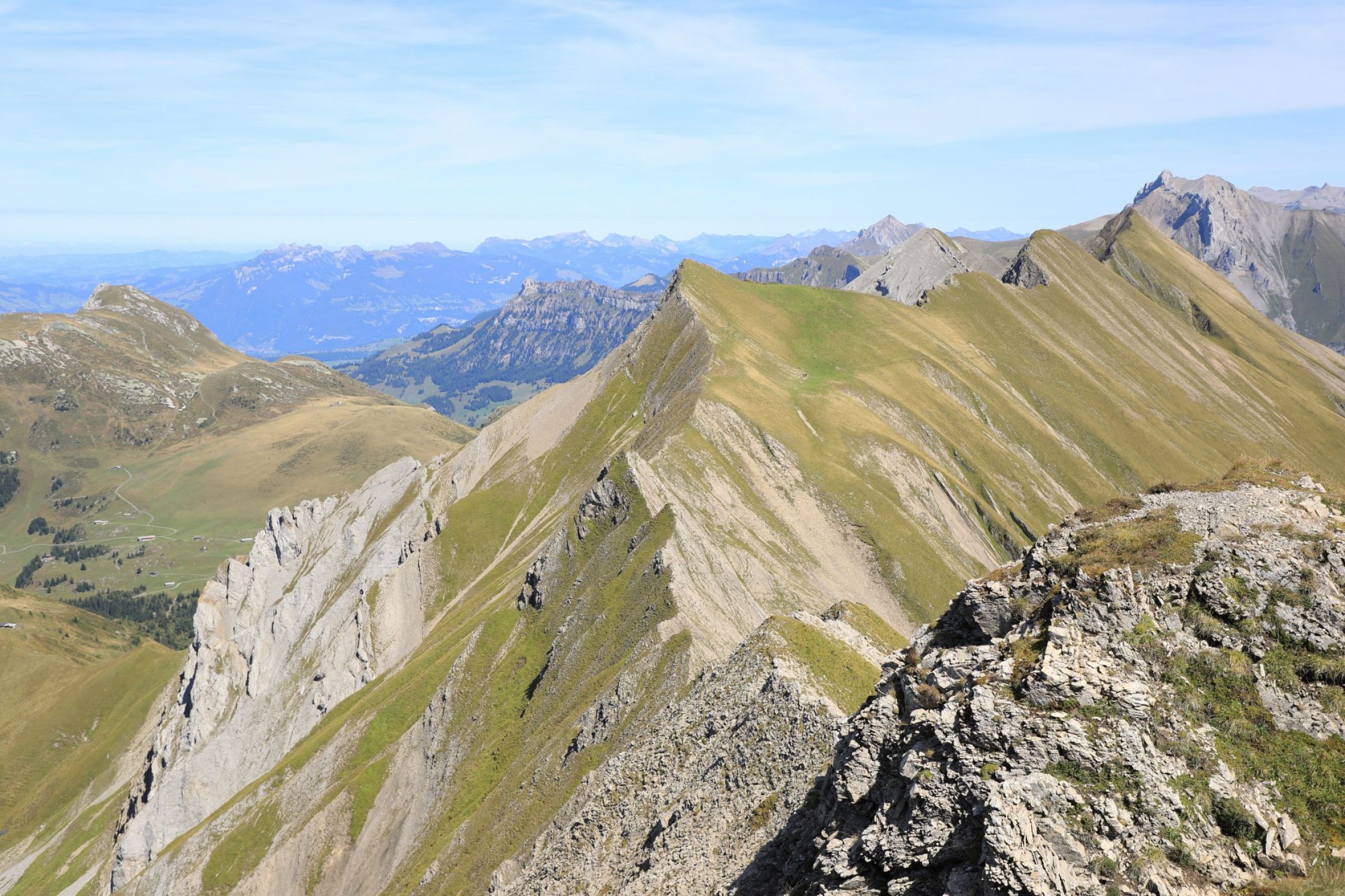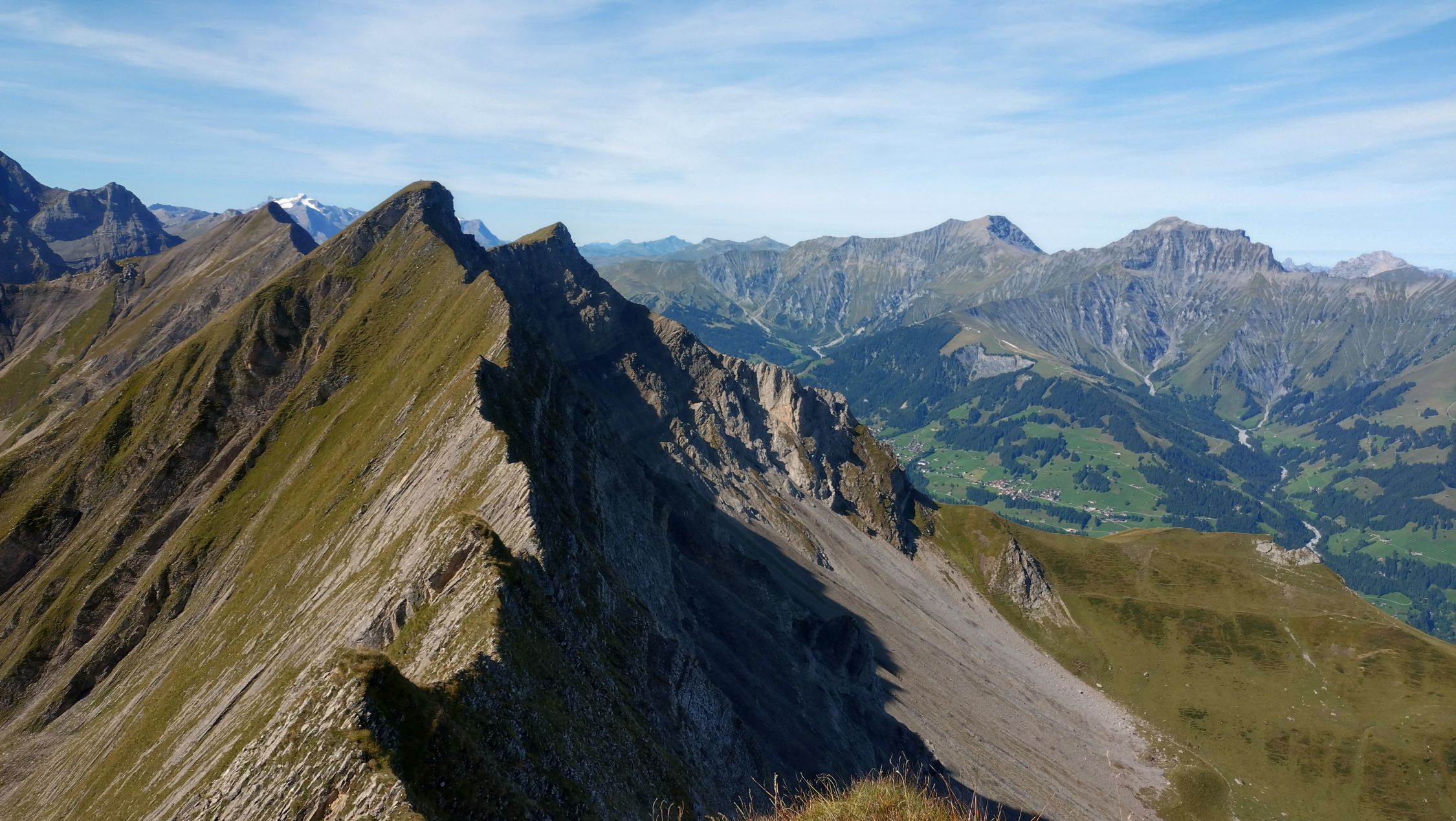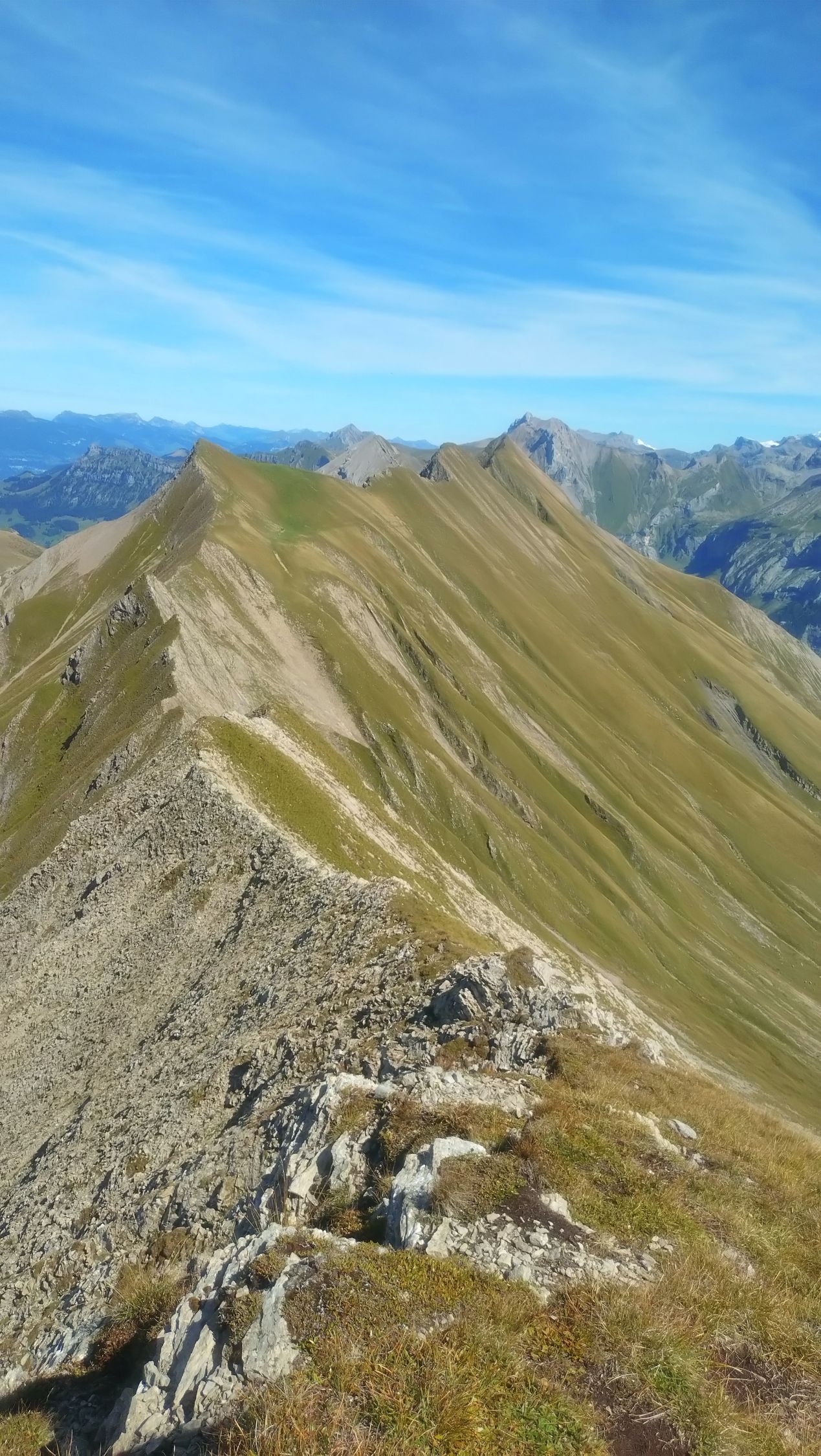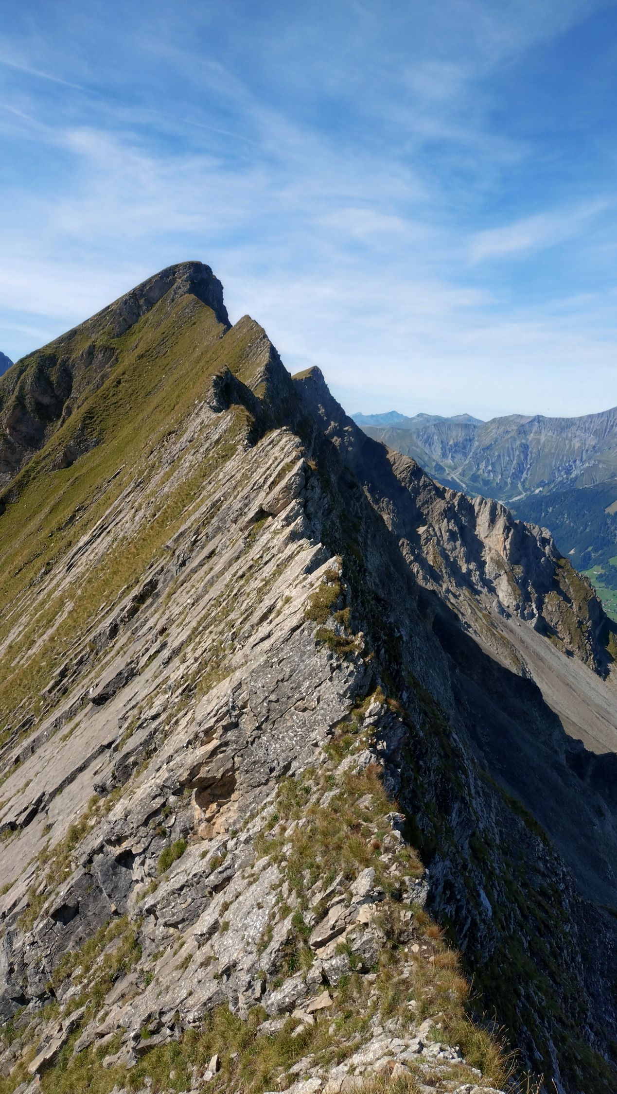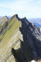 Der Grat war trocken, solange nicht westseitig auswichen wird. Es gibt keine Angewöhnungsphase am Grat, es geht von 0 auf 100. Erst später wirds einfacher.