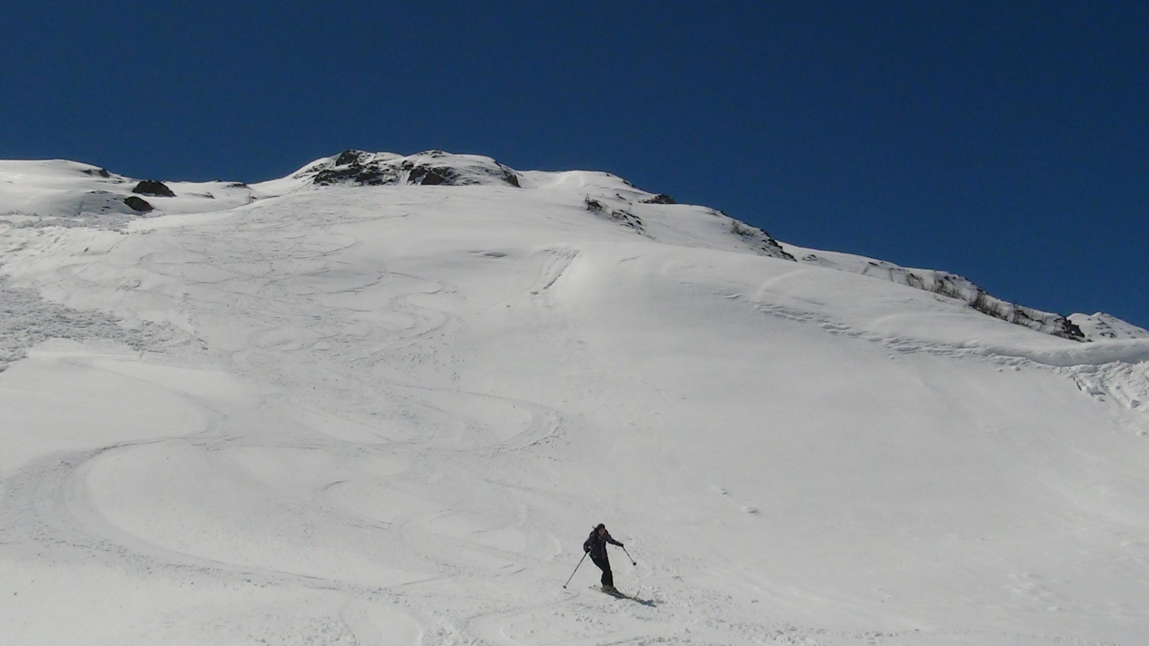 Ab der Brücke durchgehende massive Schneedecke.