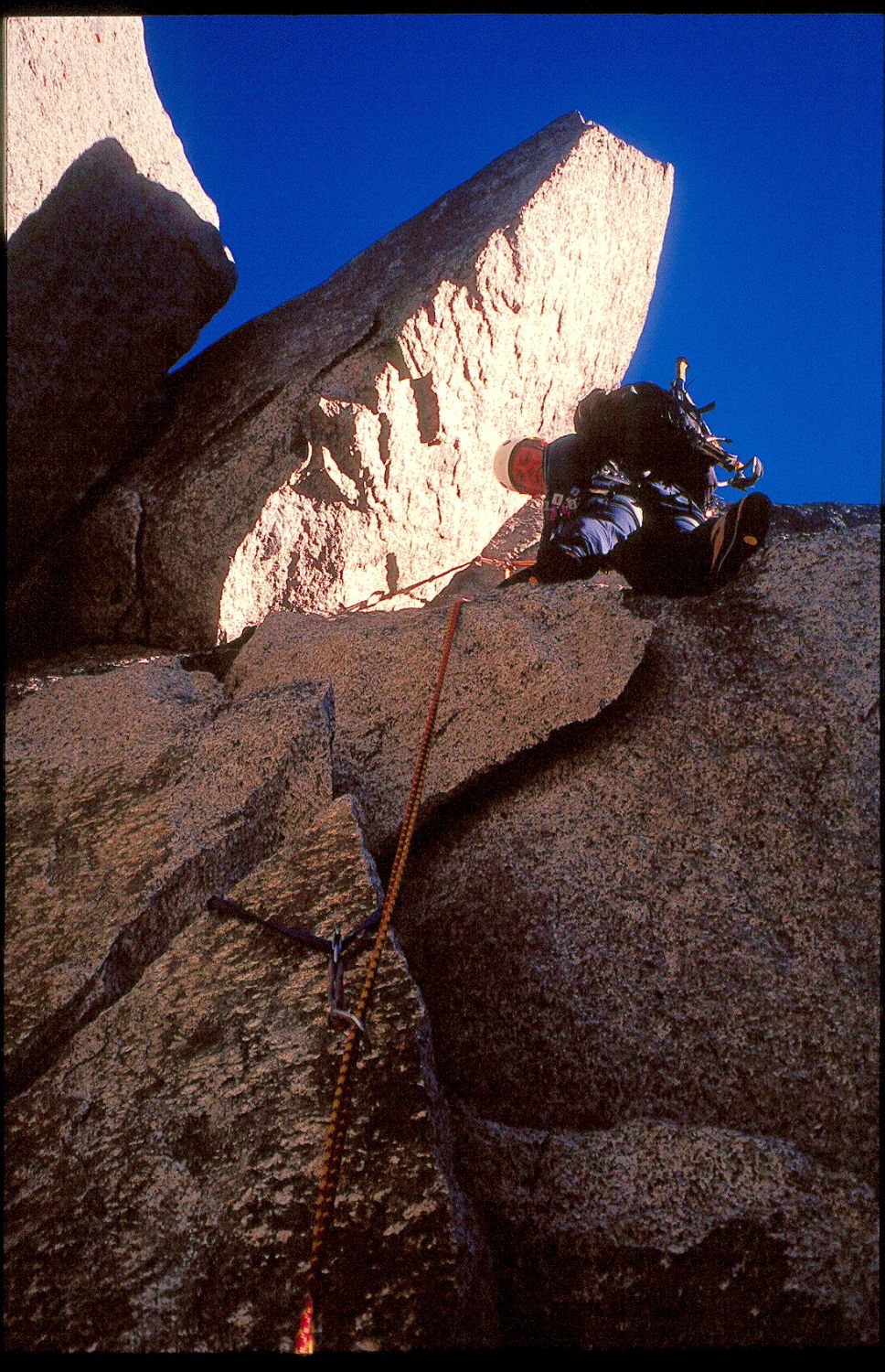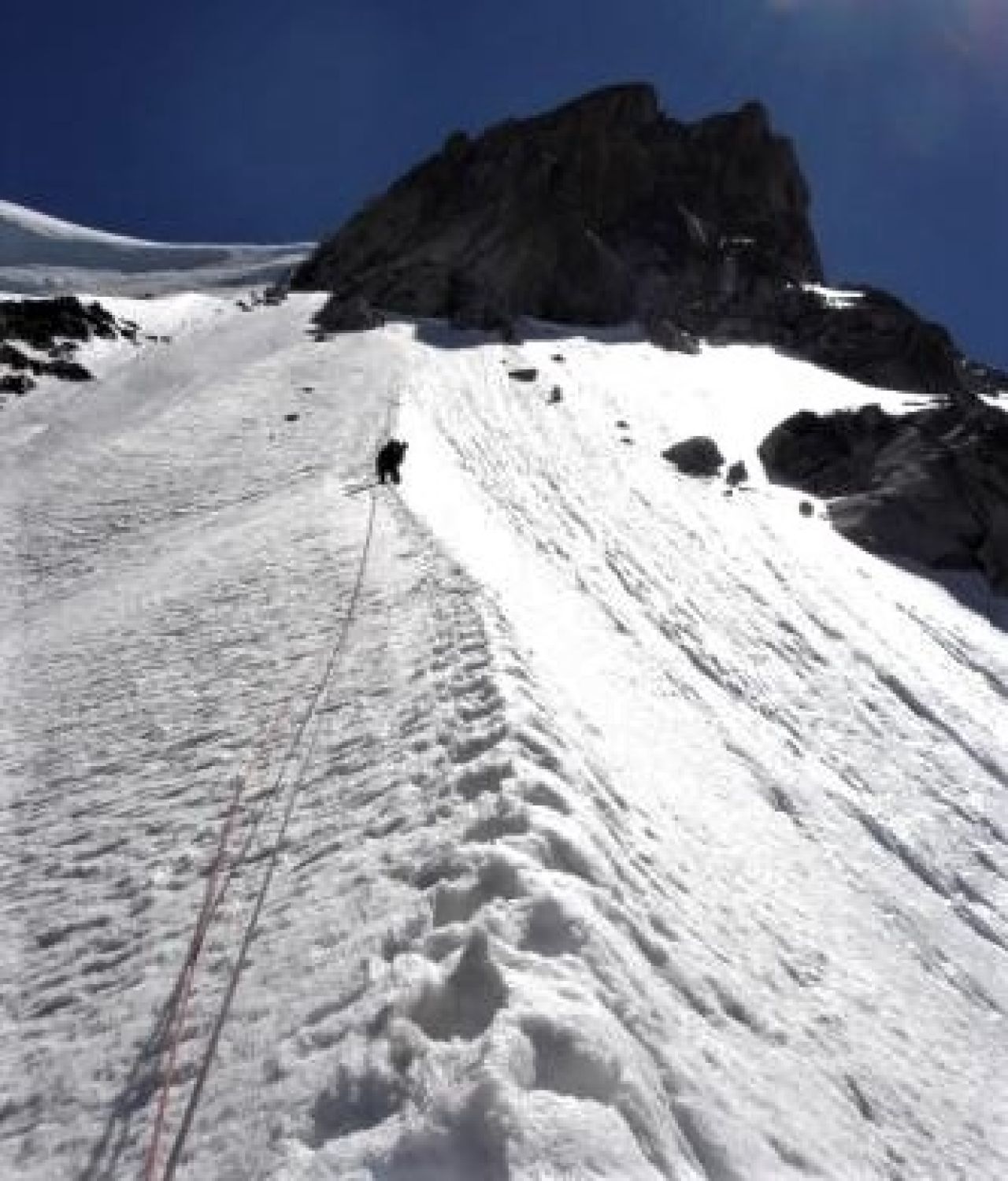 Zum Glück donnerte er in die Große Schlucht links des Frendopfeilers hinunter. Uff Glück gehabt.