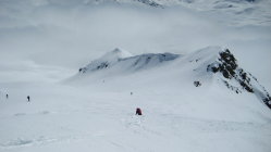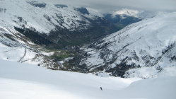 Abfahrt war ganz passabel. Allerdings war es oben nur noch knapp tragend, unten dann weicher Schnee.