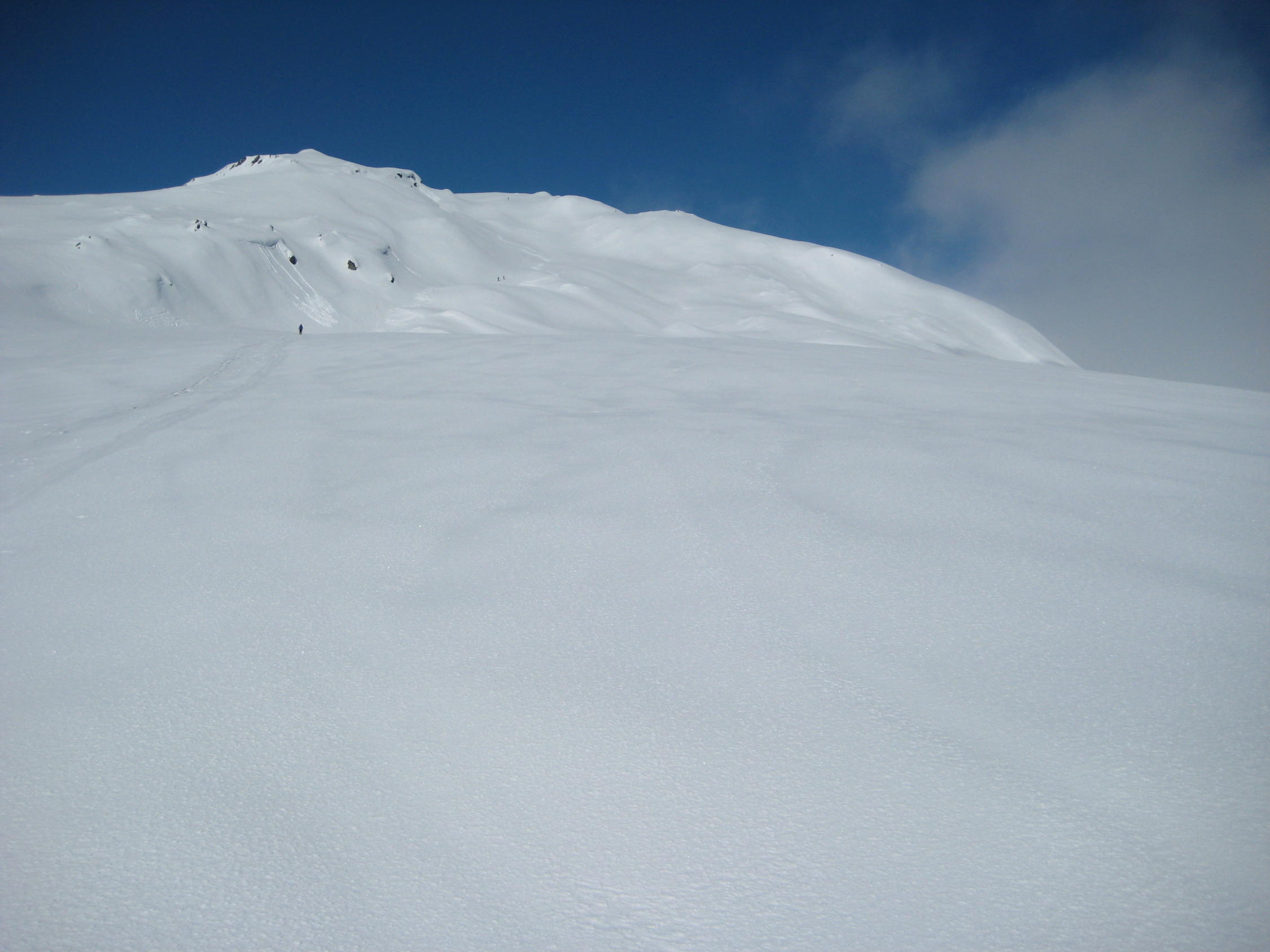 Skier bis zur blauen Brücke über die Furkareuss tragen (ca. 20 min von PP Realp). Im Bereich Laubgädem noch eher "mittelprächtige" Schneeverhältnisse, jedoch gangbar. Anschliessend über den breiten Rücken tadellose Verhältnisse inkl. einem Hauch Neuschnee. Etwa 11h auf dem Gipfel; rund ein gutes Dutzend Gipfelstürmer.