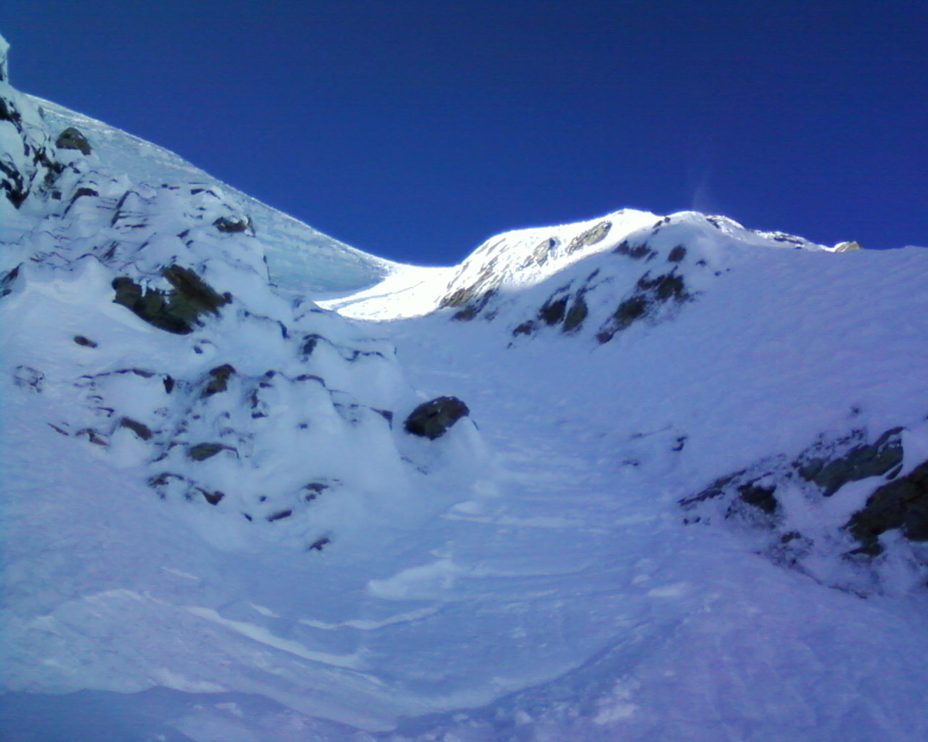 die route ist identisch mit der direkten nordwestwand des av-führers nr 867. durch gletscherrückgang aber deutlich verändert.