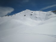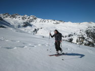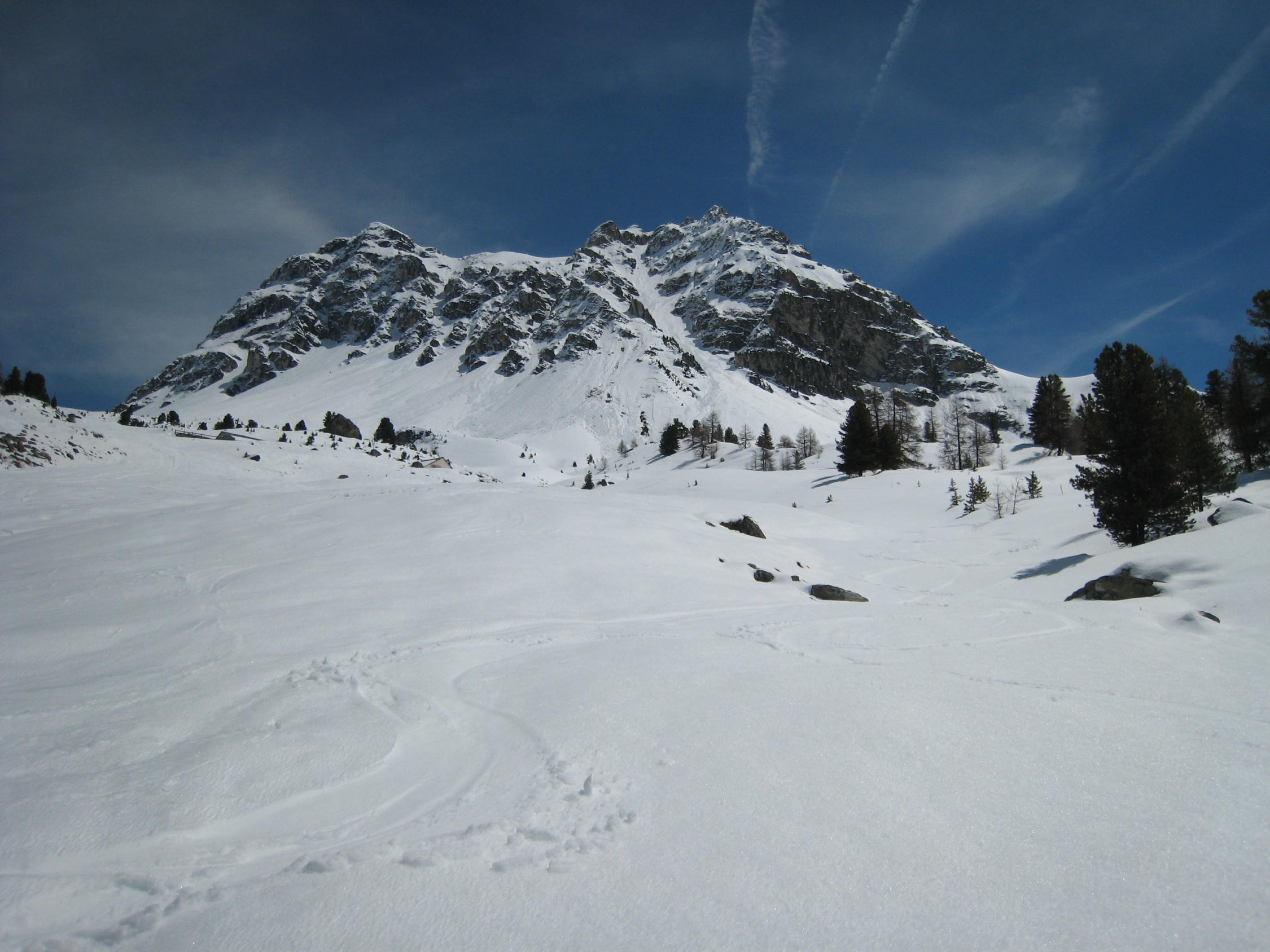 Dank noch genügend Kunstschnee auf dem Pistenteil durchgehend ohne Tragepassagen machbar. Nach relativ kalter Nacht auf der ersten Hälfte gut tragend und hart (Harscheisen nützlich). Zweite Hälfte vor allem mühsam zu spurender leicht gedeckelter Pulverschnee. Abfahrt um 13.00 Uhr war eine wahre Freude ausser 2-3 Passagen mit etwas gar dickem Deckel. Untere 2/3, Firn vom Feinsten.