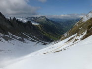 Angesichts länger werdender Tragpassagen und abrutschendem Nassschnee wohl erst ab der nächsten Saison wieder lohnend. Aufstieg dann besser durch das Vallon des Morteys.