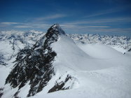 Gletscherbahn ab 8.00, Bergfahrt 20 €. Am Zuckerhütl guter Trittschnee, Steigeisen und Pickel aber zwingend. Wilder Pfaff nebenan problemlos mit Ski bis Gipfel. Viele Abfahrtsvarianten möglich, waren noch sehr gute Pulverschneeverhältnisse, Schneefälle letzte Woche nur ca. 15 cm auf 3000m
