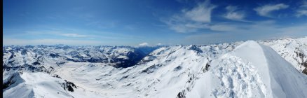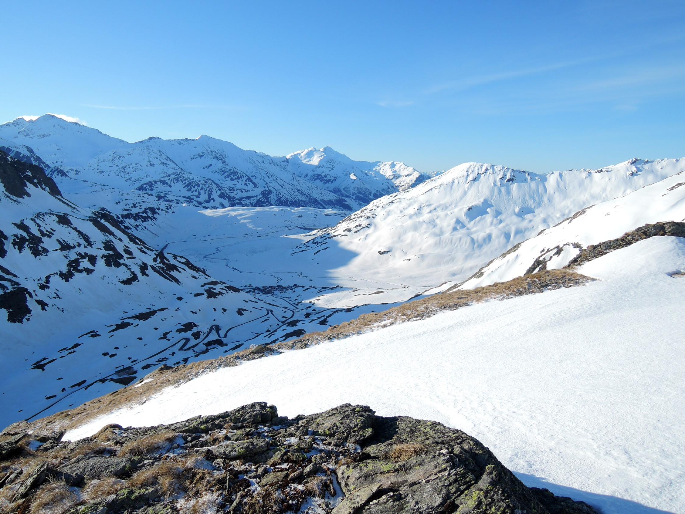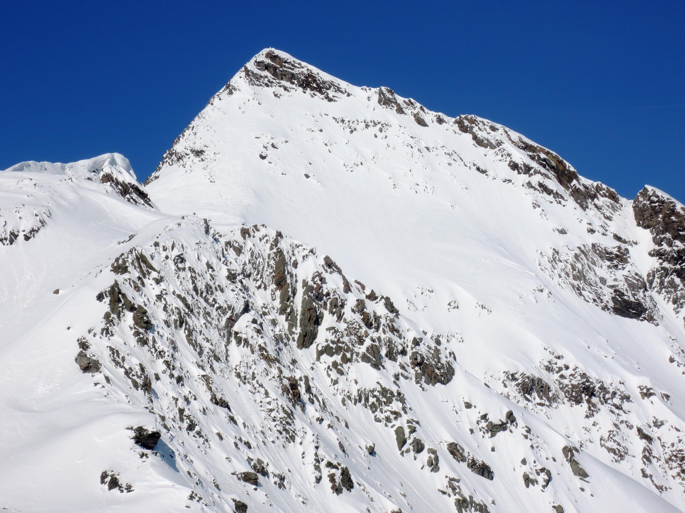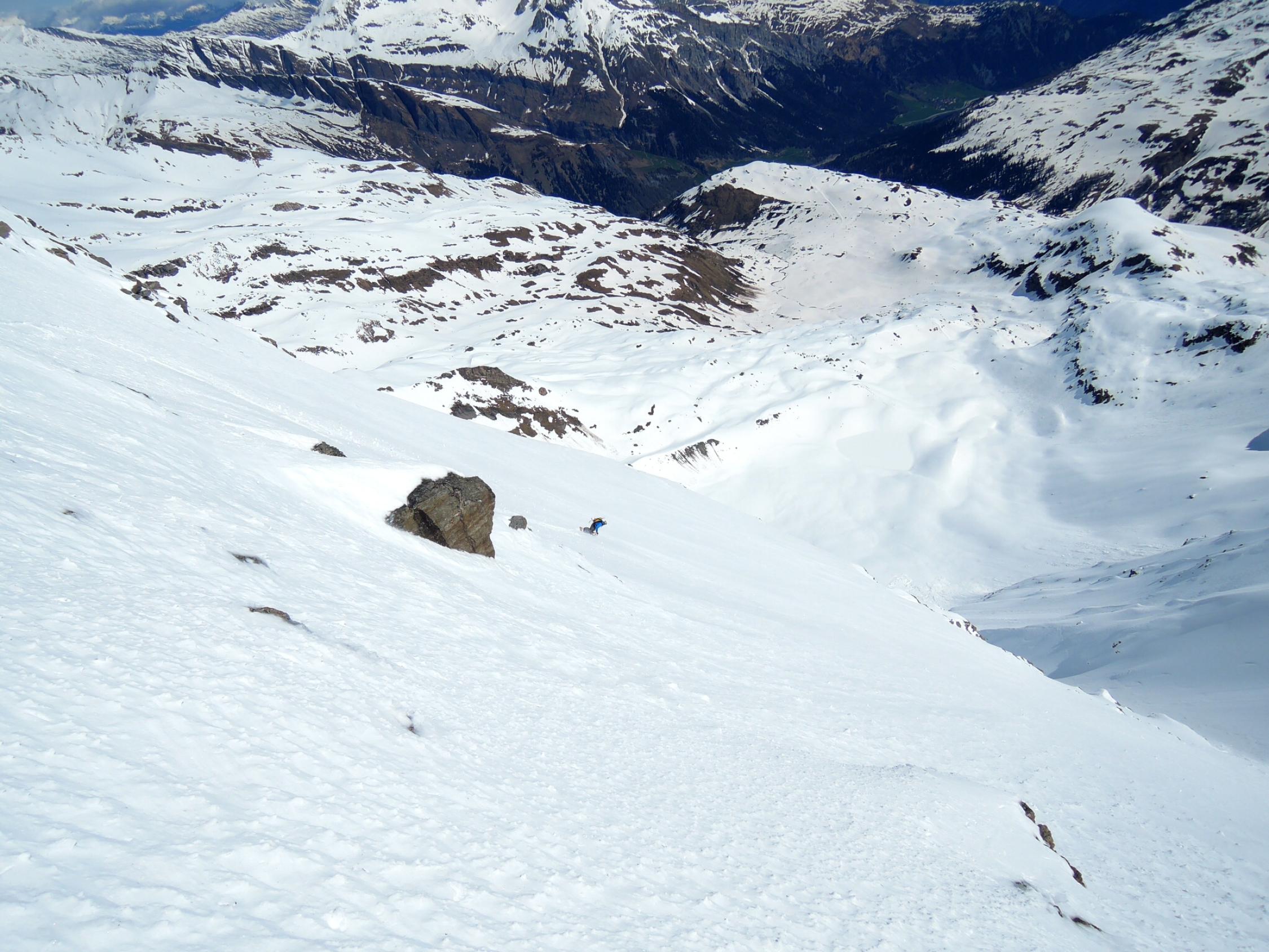 Nachdem wir auf dem Gipfel waren, sind wir das Nordcouloir abgefahren. HAMMER Bedingungen, Pulver gut! Danach beim See wieder hoch auf den Sattel unterhalb Lattenhorn, damit wir die schöne Sulzabfahrt bis zur Italienischen Zollstation geniessen konnten.Harscheisen für Zustieg. Steigeisen und Pickel für auf den Gipfel.