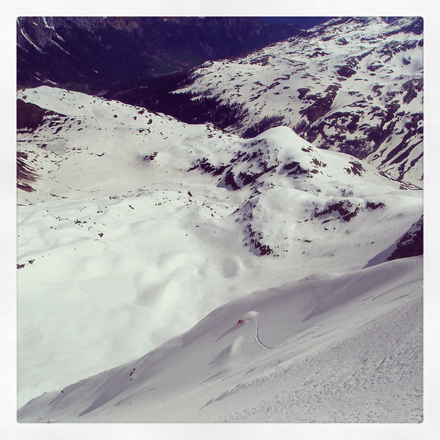 Morgens Firn, nachmittag Sulz. Nordcouloir schönster Pulver. Immer noch viel Schnee vorhanden. Siehe Fotos der Passstrasse.