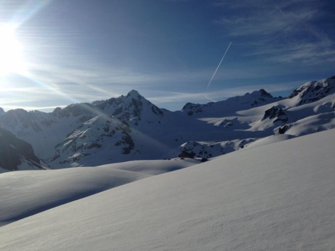 Durch den Regen Schneedecke z.T. aufgeweicht jedoch gut tragend. Es hat immer noch genügend Schnee im Dischma und die Verhältnisse sind sehr gut.
