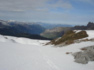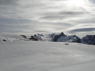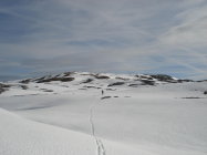 Temperatur + 4°. Noch einige kleine Schneefelder vorhanden , aber sehr wenig Schnee für diese Jahreszeit, der Schnee war heute nicht verfirnt,