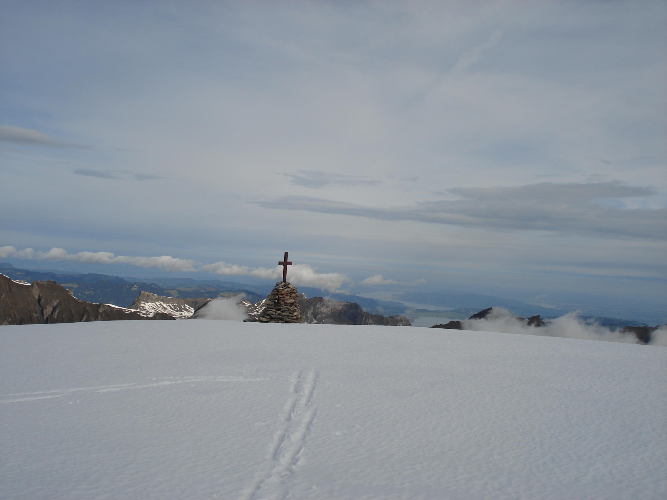 auf dem Gipfel ein unangenehmer Nordwind wie gewohnt im diesem Winter und Frühling, Abfahrt oben leichter Deckel unten dann besser zum fahren.