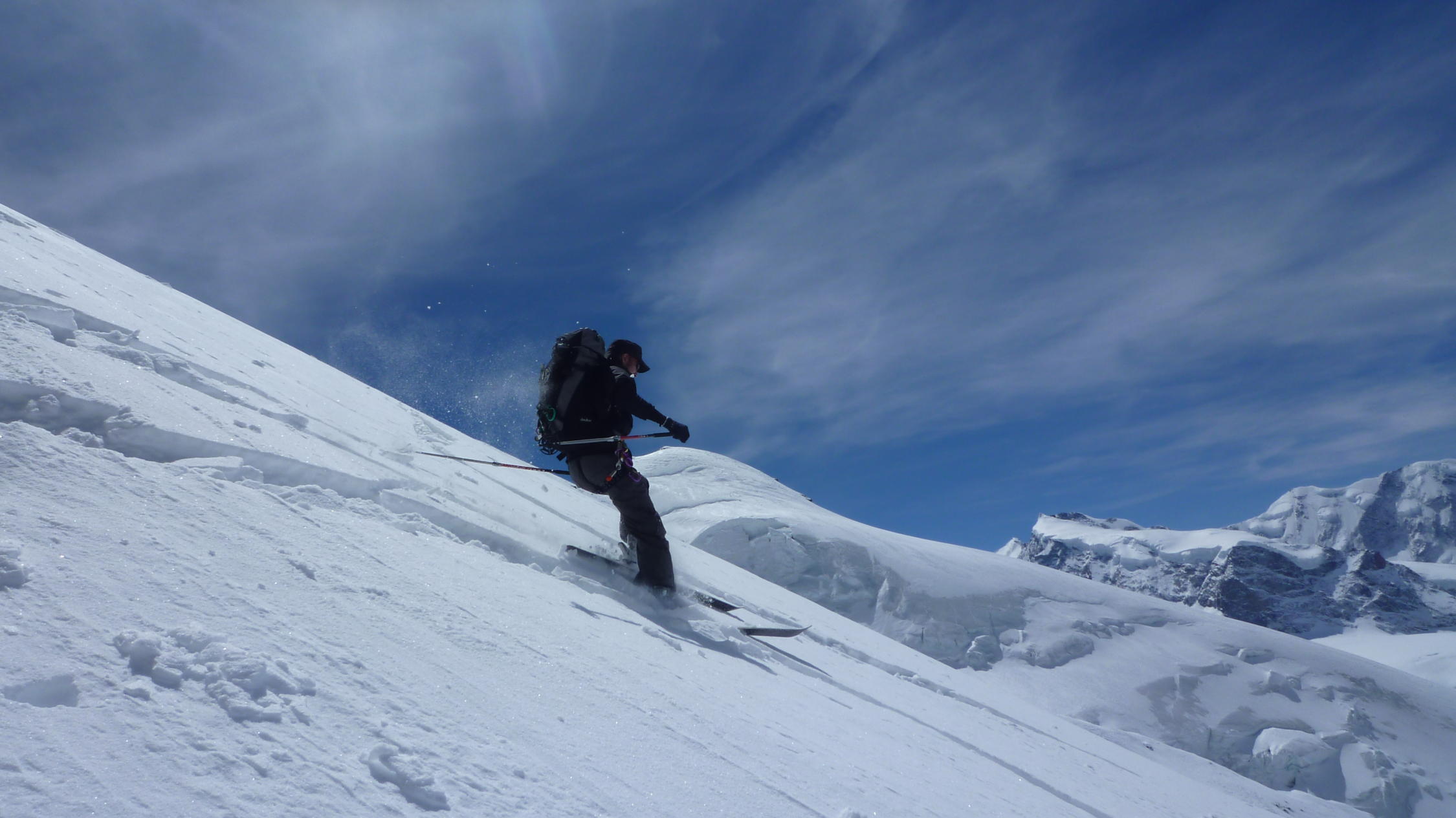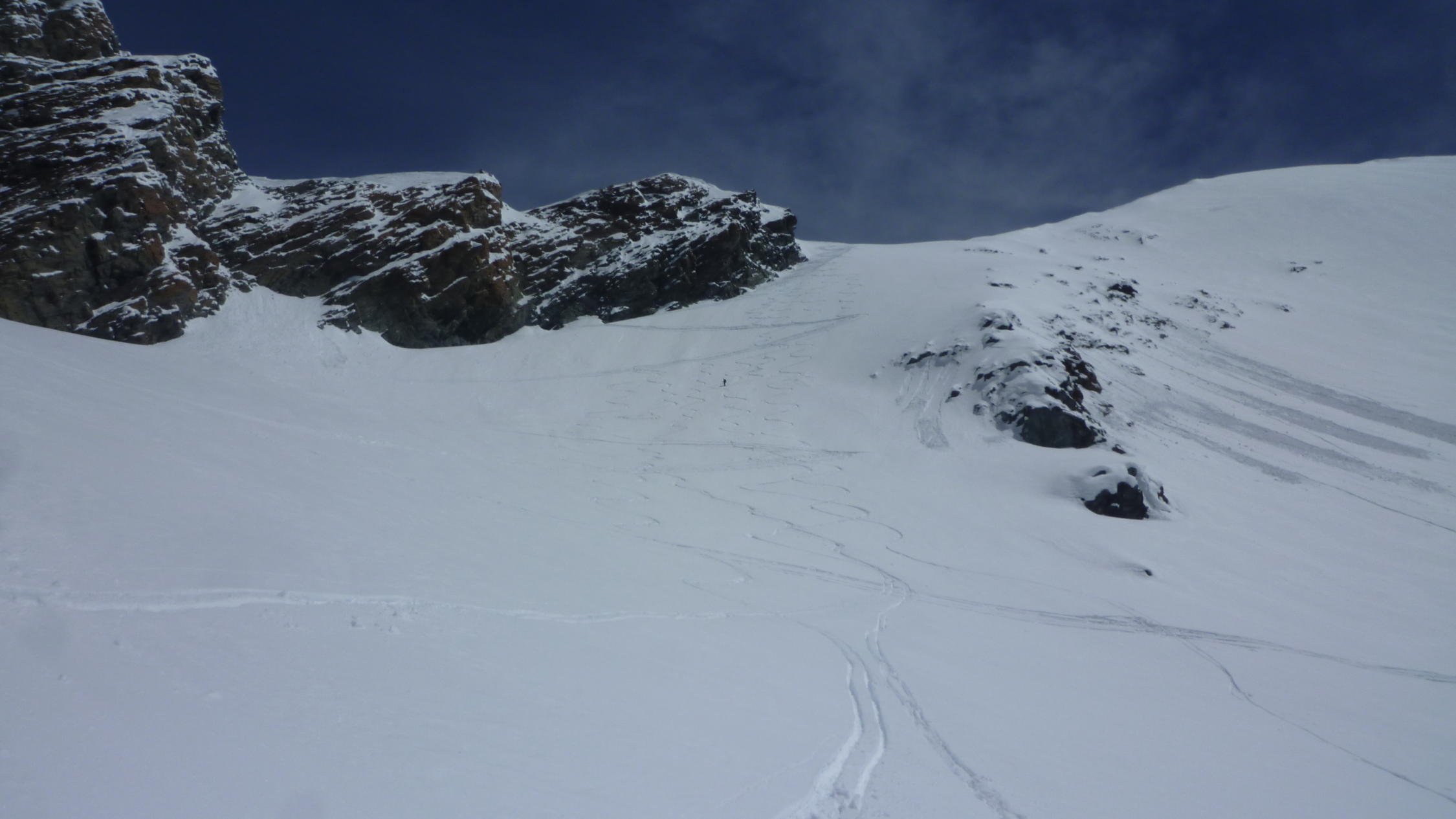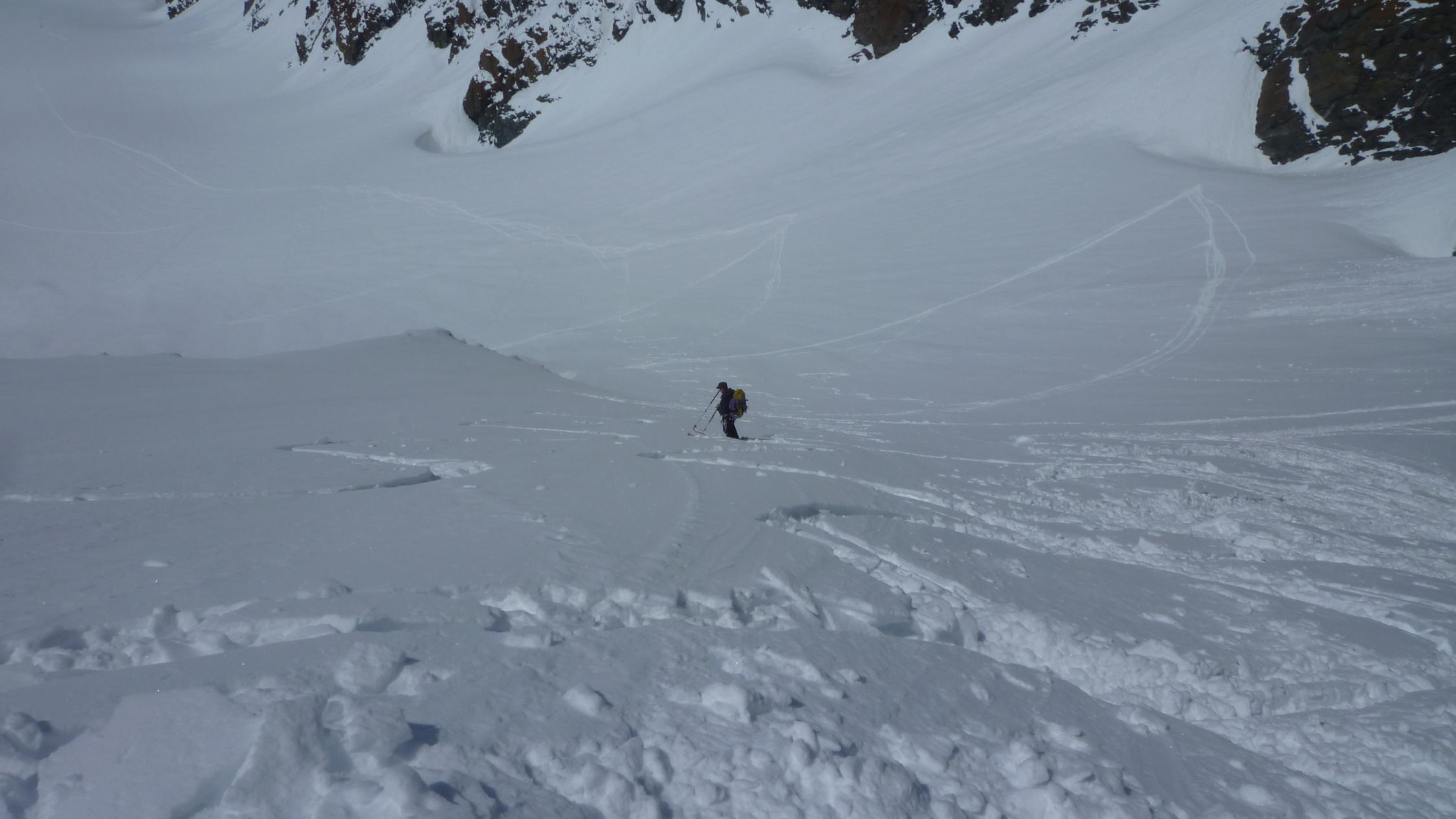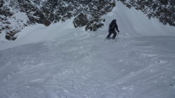 In der Abfahrt viel Schnee in allen Arten. Nur selten richtig gut,aber immer fahrbar.