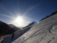 Start um 06:30 am Parkplatz an der Flüela Straße mit vielen anderen Tourengeher. Noch reichlich Schnee der im unteren Bereich nicht durchgefroren war. Oben wars gut. Mit Ski bis zum Gipfel was sicher nicht mehr lange geht. im Anschluß noch aufs Radüner Rothorn. Schöne Abfahrt bei difusen Lichtverhältnissen.