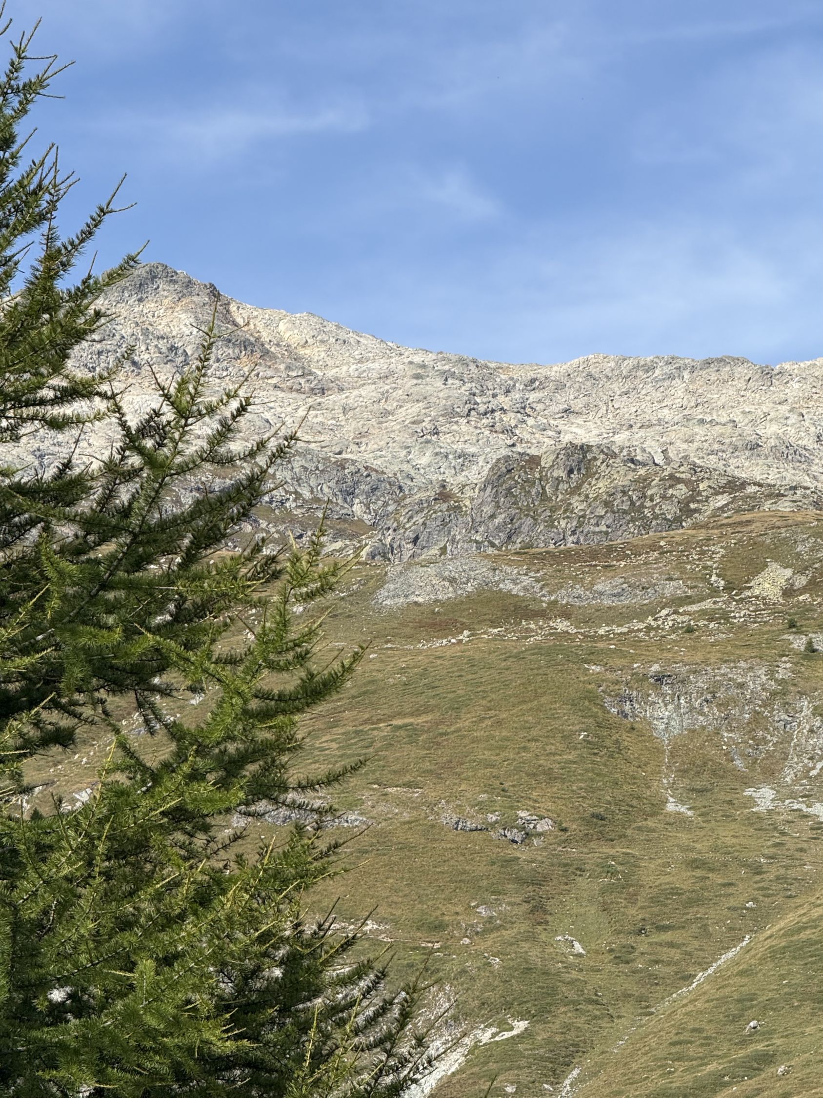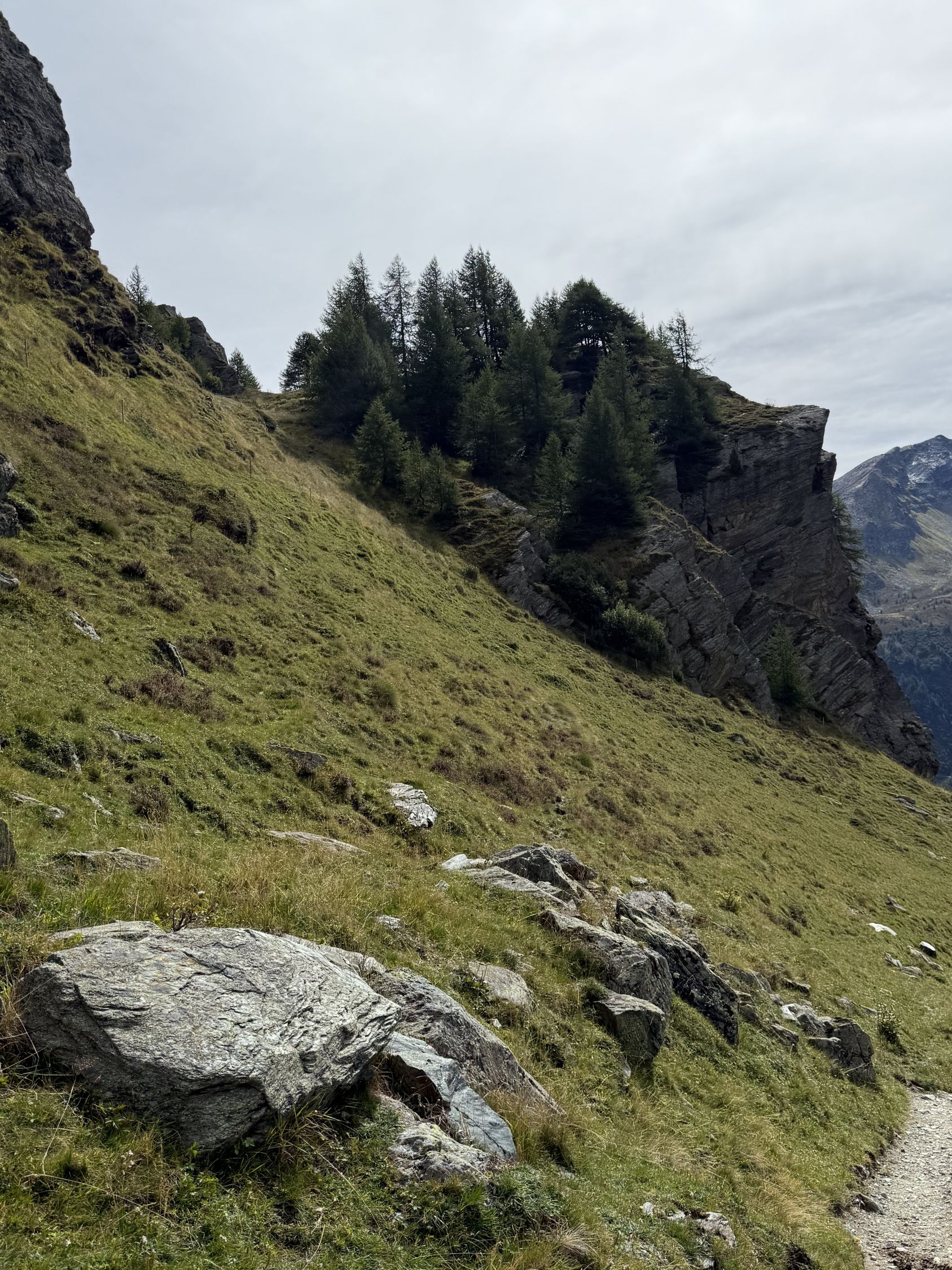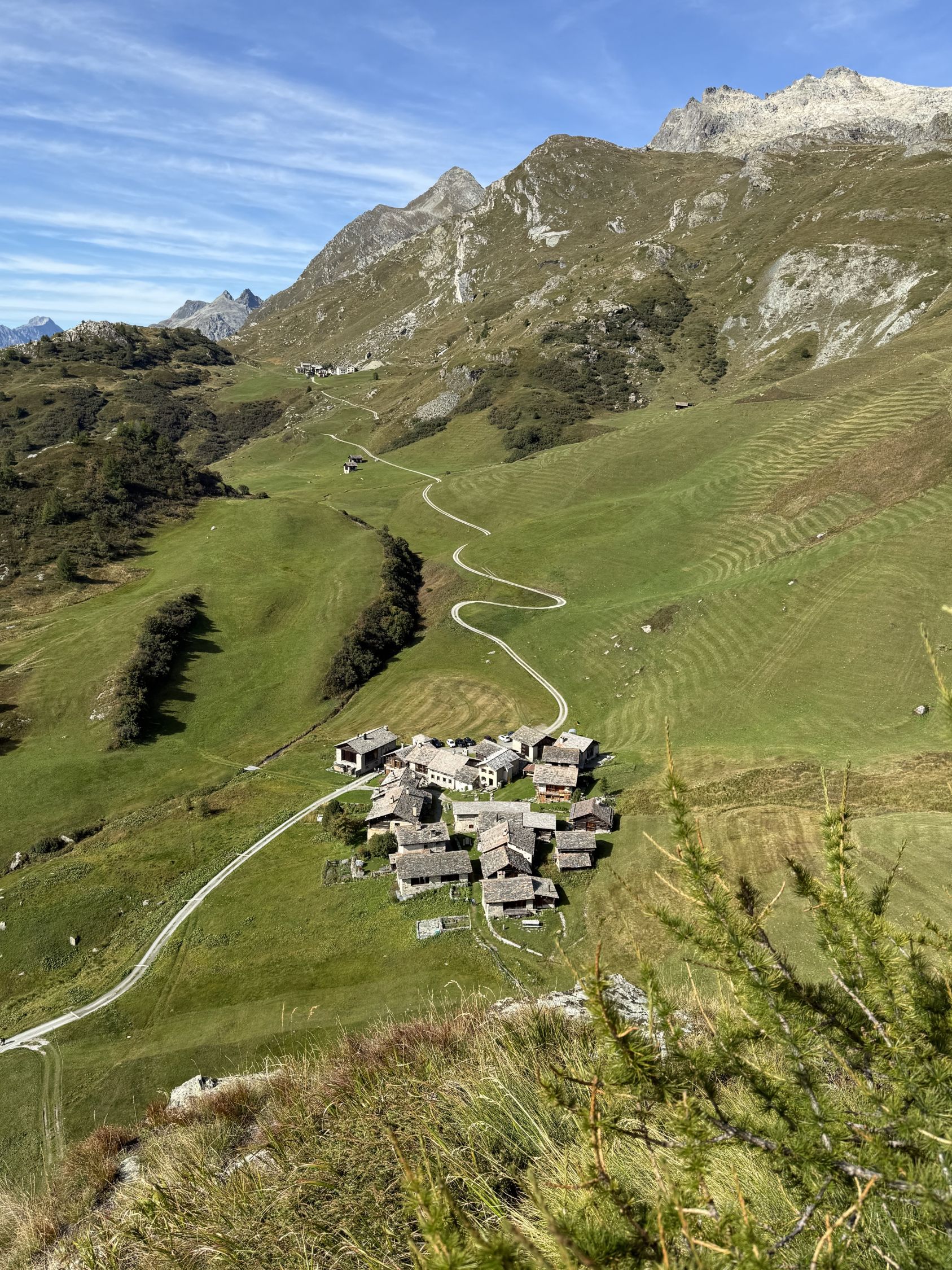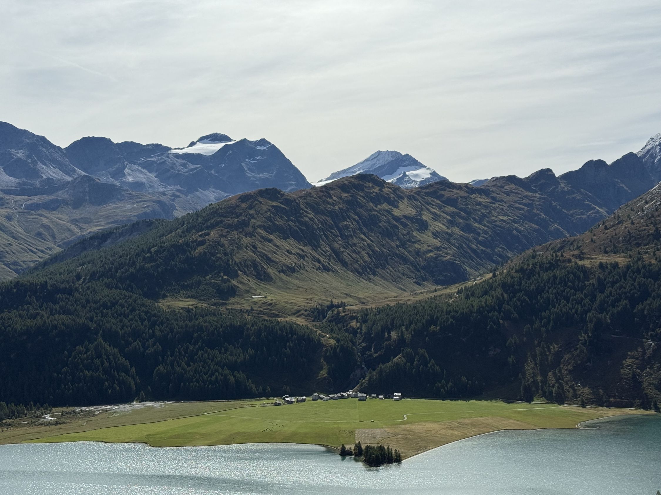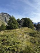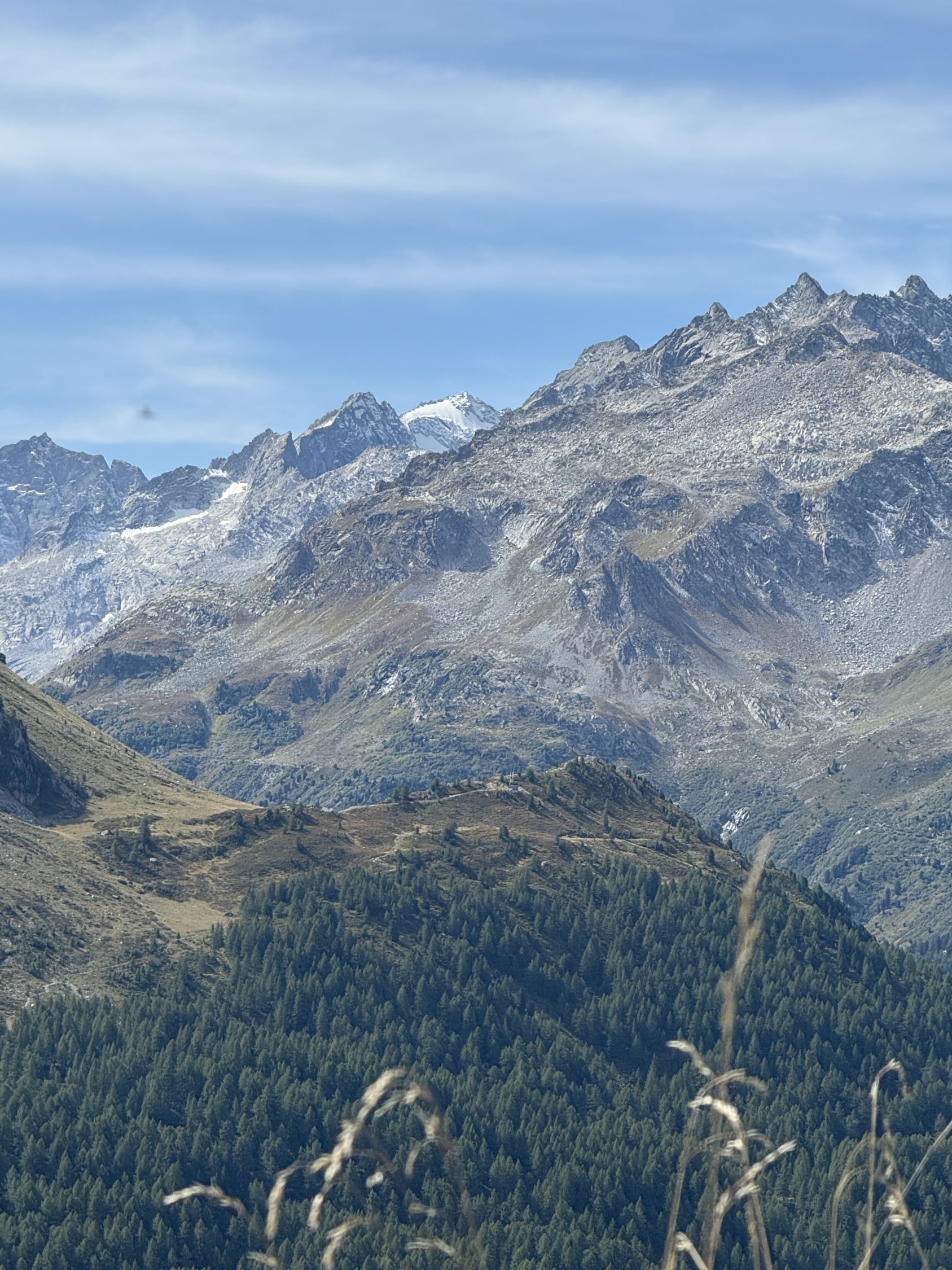 Kurze Morgentour auf den markanten Pfeiler östlich Grevasalvas mit toller Aussicht, T4-II. Start Grevasalvas 9 Uhr, 8 Grad, windstill, Zirruswolken. Ohne Probleme bis zum Pfeiler, die steile Grasflankenhoch, im oberen Teil Weglein bis Plateau. Nun kurze Klettereinlage, 2. Grad, etwas ausgesetzt zum felsigen Gipfel P. 2055. Abstieg wie Aufstieg.