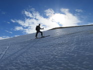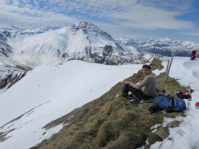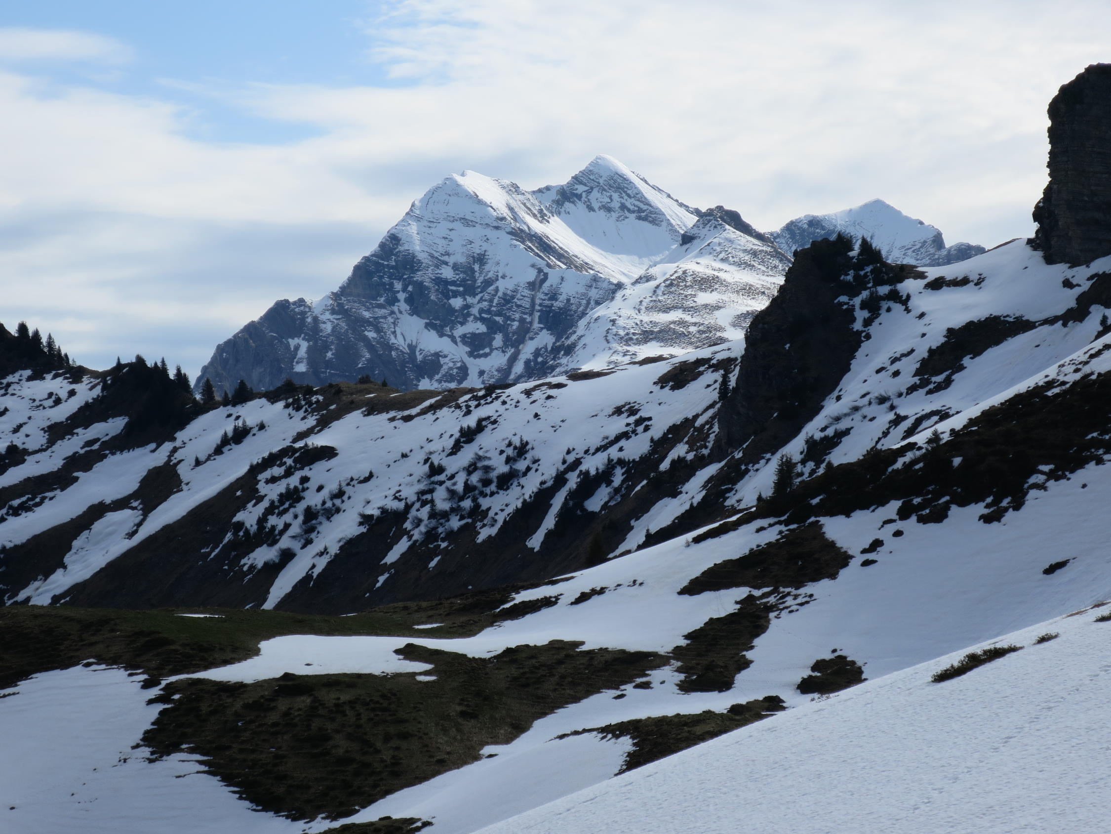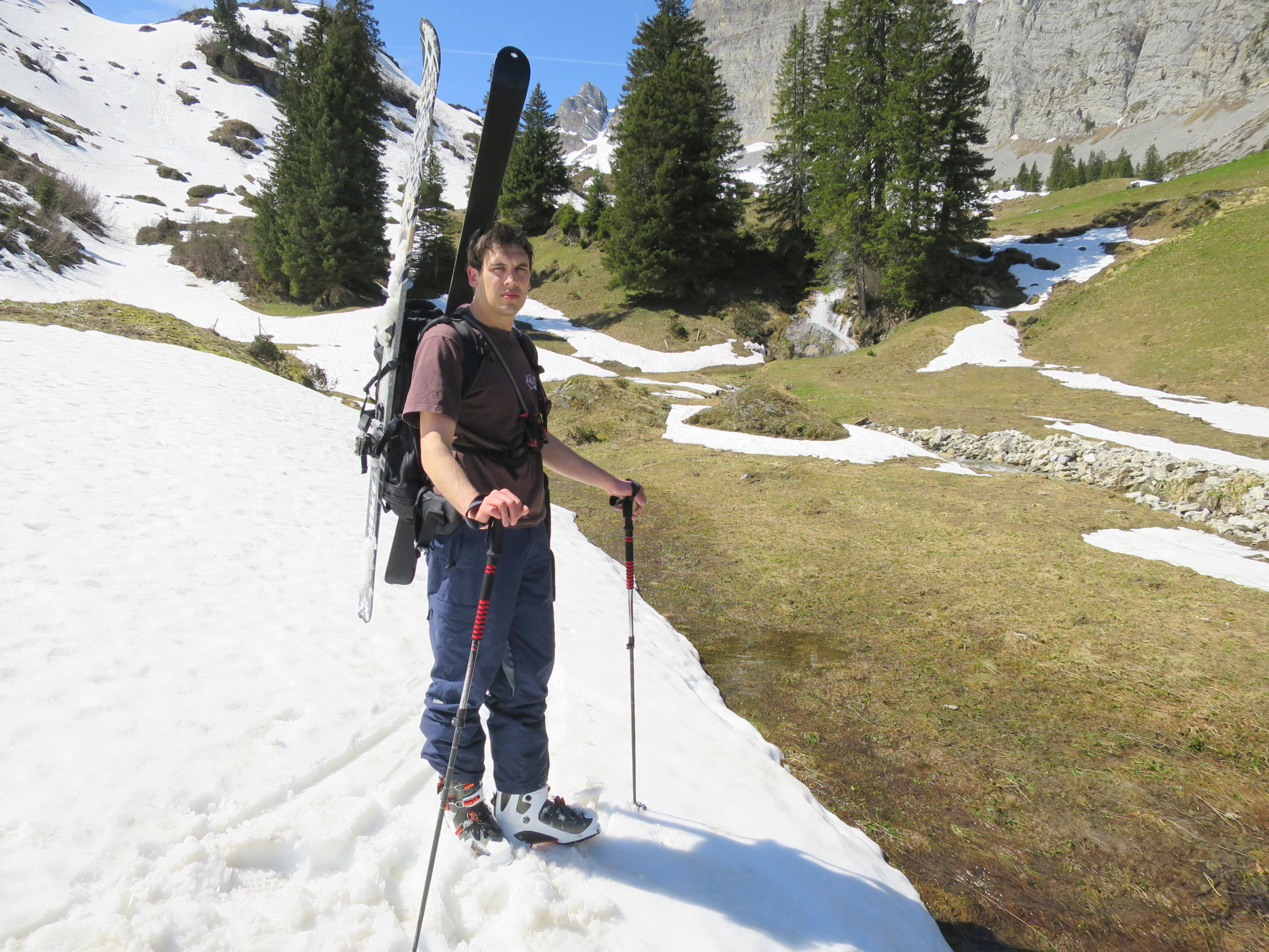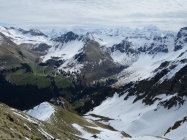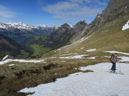 Unser Filius in Bern besucht. Halbtagestour im schönen Diemtigtal. Unser Ziel das Rauflihorn. Ab 1500m Skis bis auf die Alp Grimmi getragen. (Ca.40Min.) Dann auf geschlossener Schneedecke, (leicht eingebrochen) bis auf die Grimmifurggi. Von dort dem Grat entlang auf den Gipfel, zur Zeit nur noch knapp mit den Skis machbar. Prognose von Gipfelbuch Autoren, etwas zu optimistisch. :) Abfahrt auf der Abbruchseite des Grats noch ganz passabel.