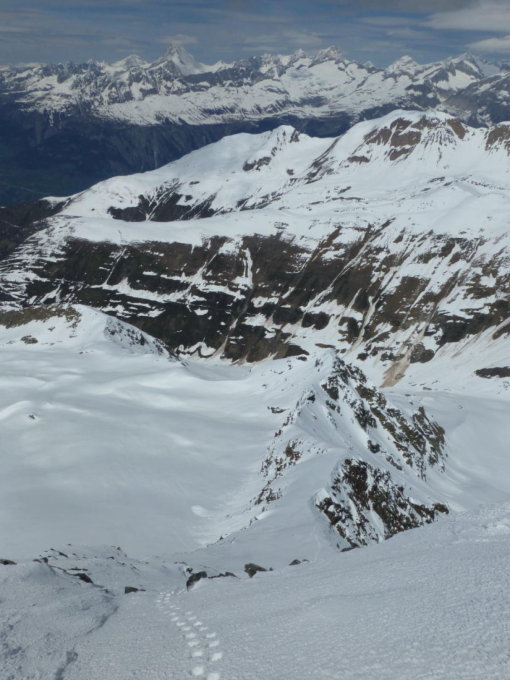 Morgens sonnig, dann bei SW-Wind zunehmend bewölkt. Ski unterhalb Löüb (1653m) und kurz unter der Bortelhütte getragen. Zustieg tragend angefroren, Bortelhorn NW-Grat griffiger Presspulver, Abfahrt Bortelseewji schöner Sulz, Furggubäumhorn N-Rücken und NE-Flanke aufgeweicht und griffig, Ausfahrt Nass- und Altschnee.