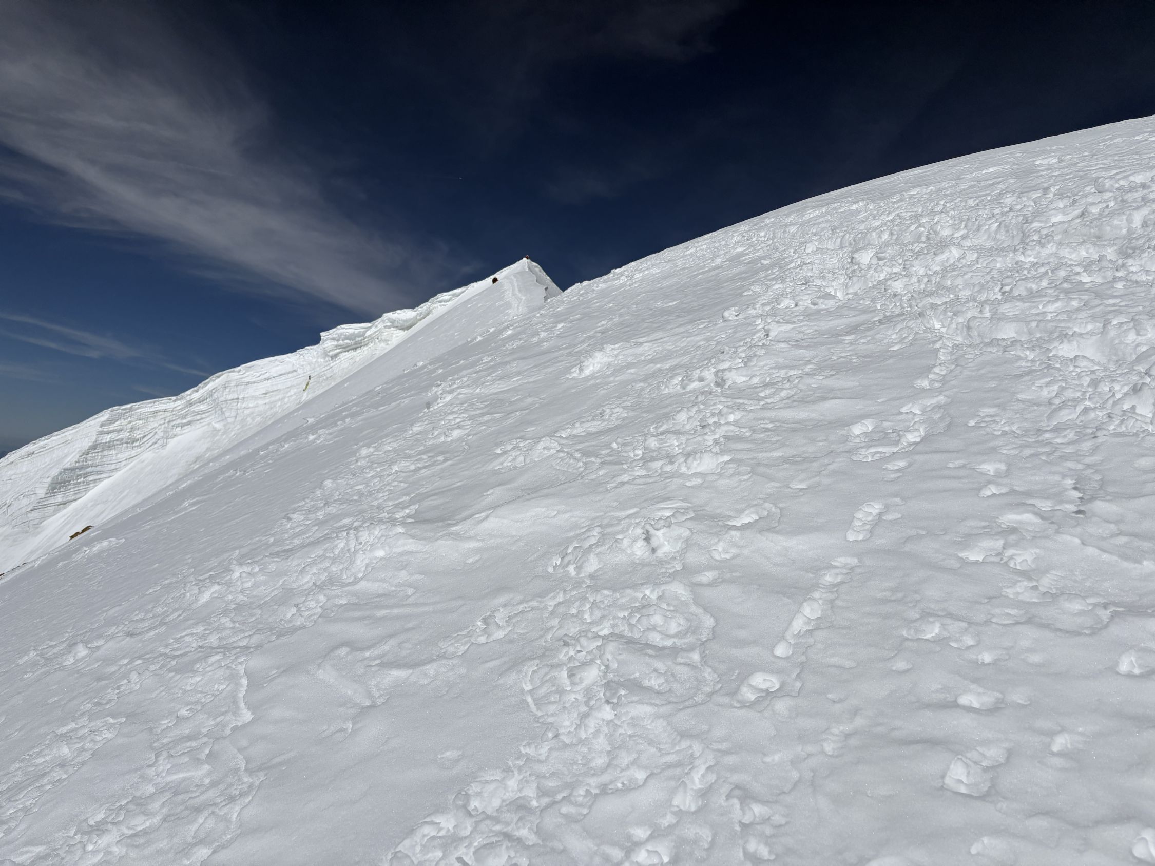 Gipfelgrat am Ende recht schmal. Kaum Wind, nur am Gipfel ein wenig ungemütlich