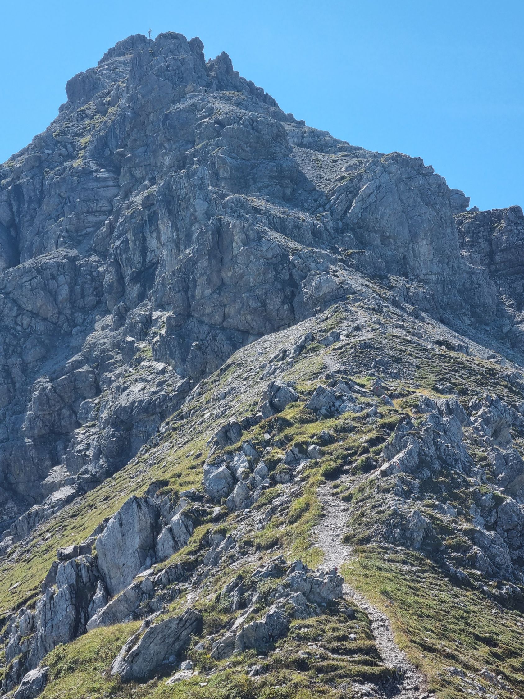 Das gut bezieht sich auf die gesamte Tour. Die Gipfelrinne ist sehr schmierig und teilweise absturzgefährdet, bei anderen Personen in der Rinne (von denen es heute einige gab) ist die Steinschlaggefahr allgegenwärtig.