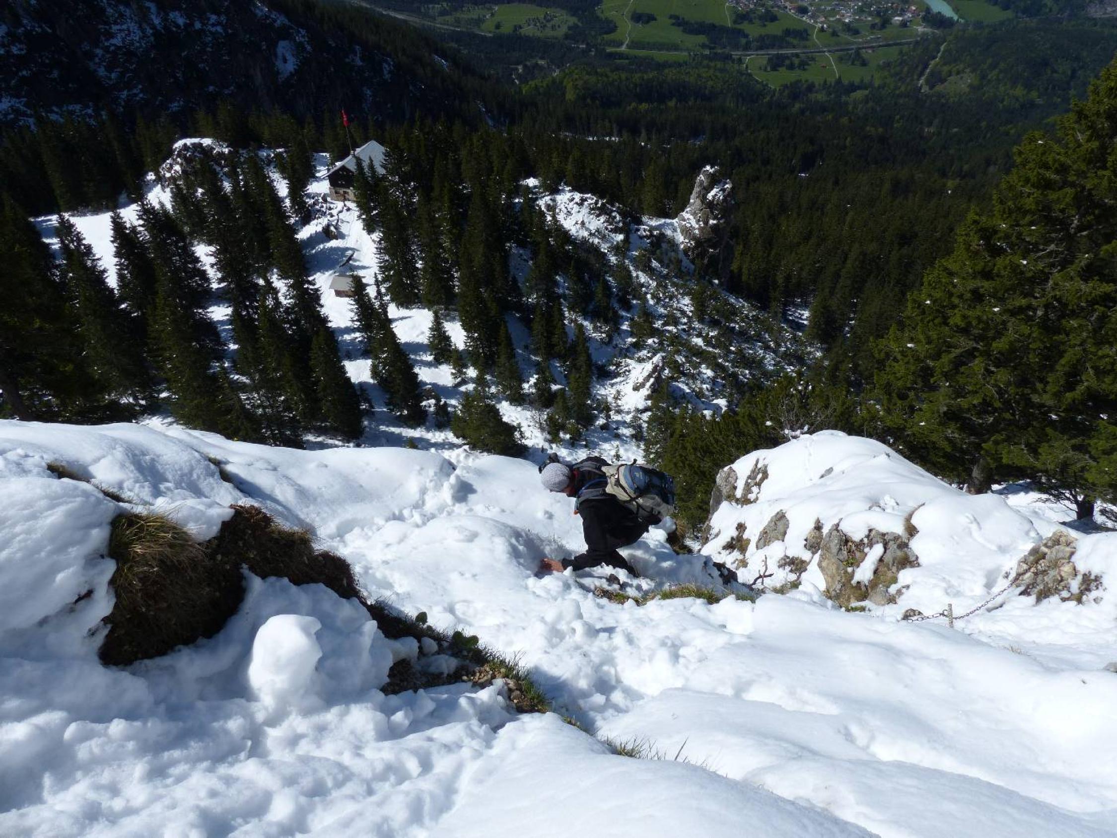 Aufstieg zum Säuling durch nicht unerhebliche Schneemengen in tw. absturzgefährdetem Gelände trotz einiger Versicherungen recht anspruchsvoll: bewerte Aufstieg bei diesen Verhältnissen als T6