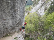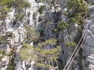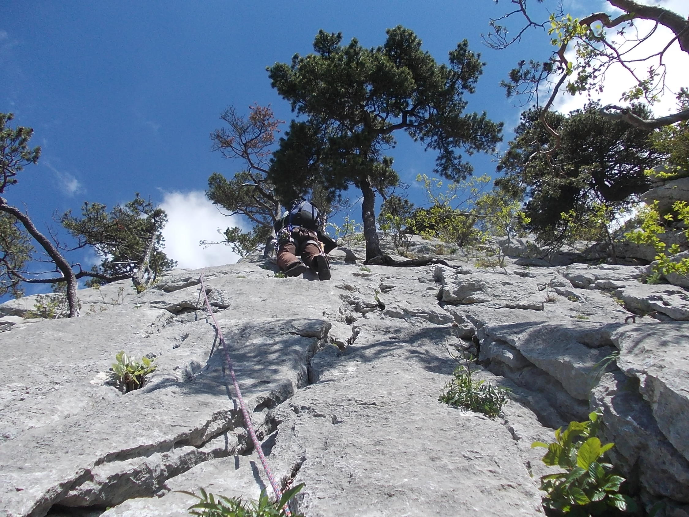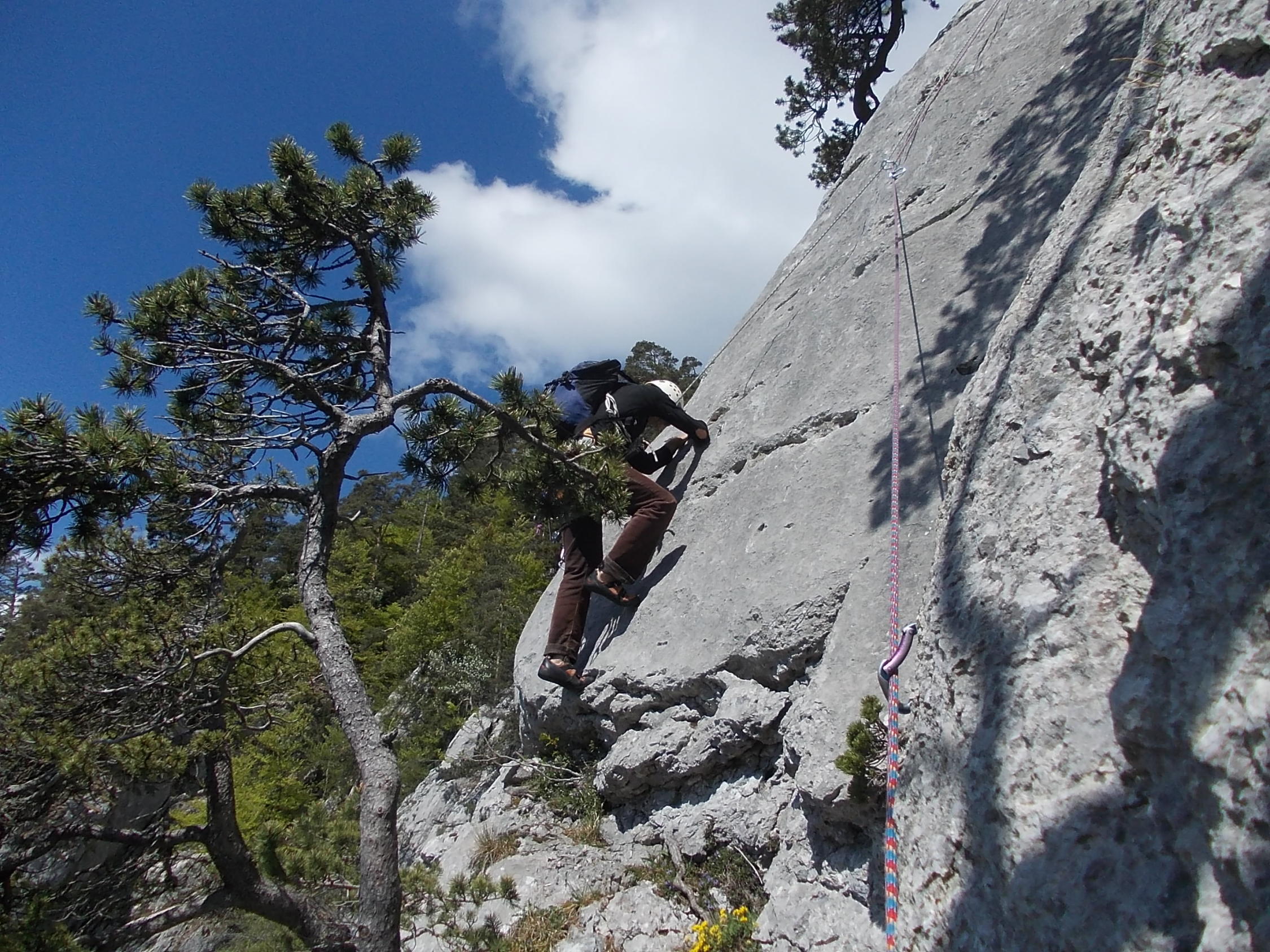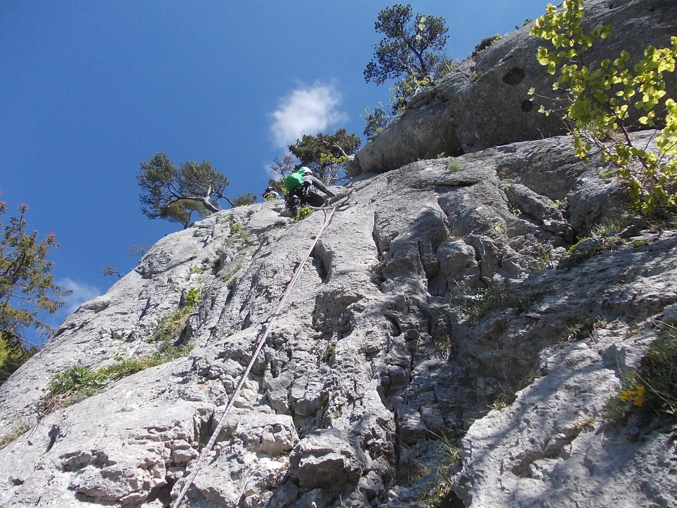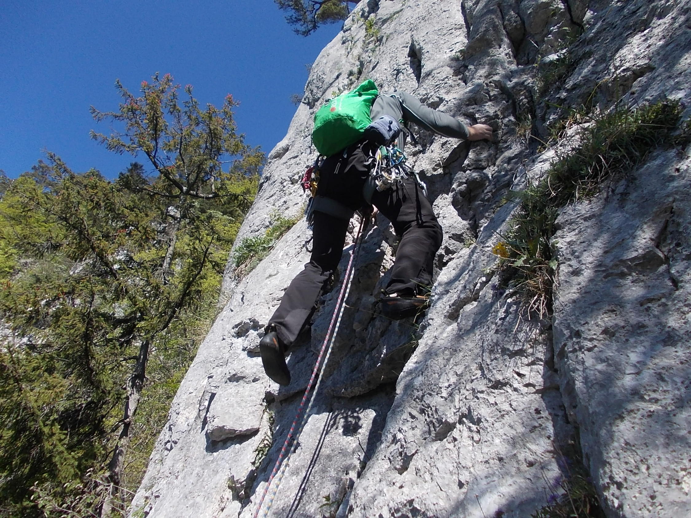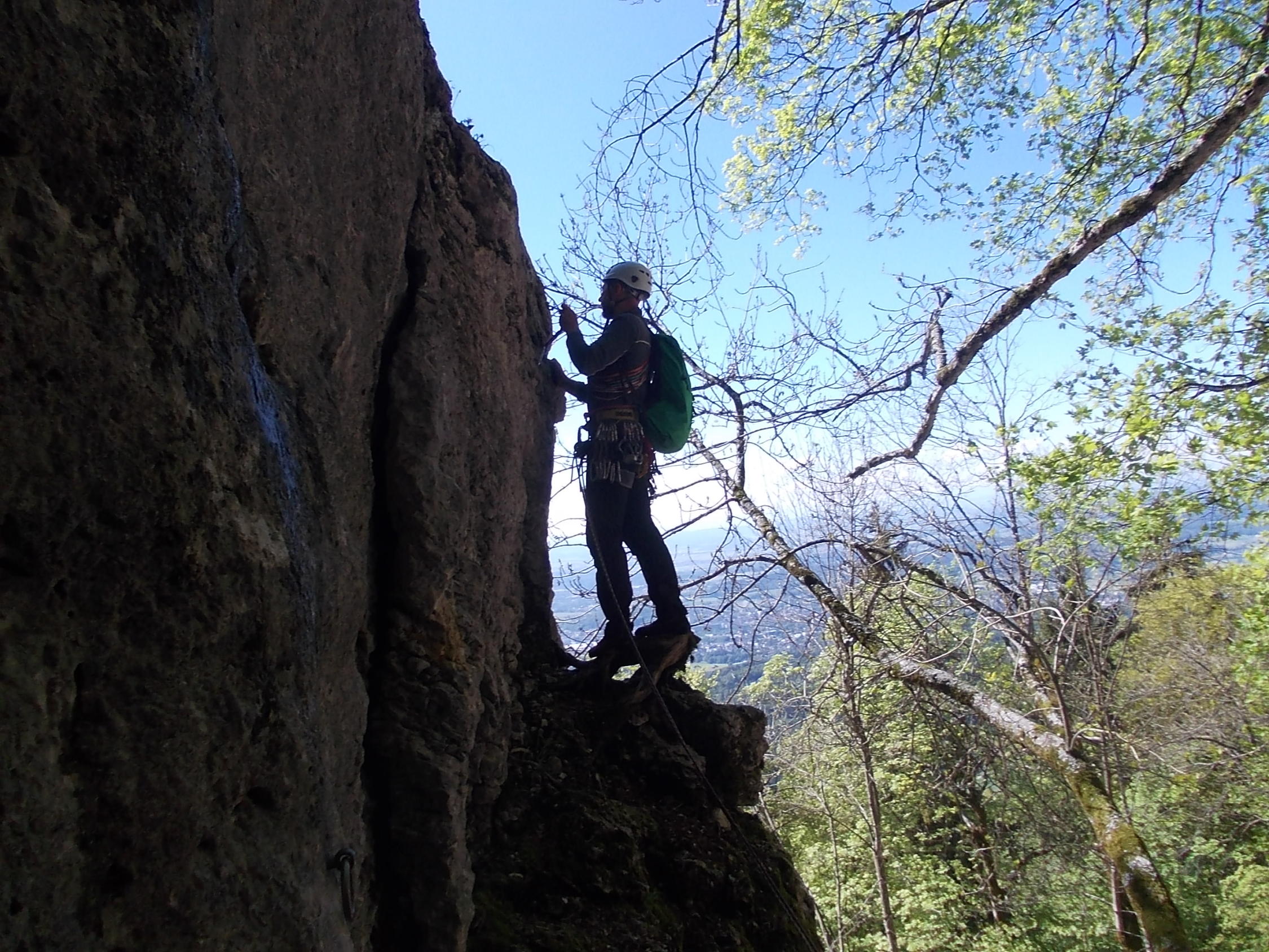 Ein paar noch verbliebene nasse Stellen trübten das Klettererlebnis Balmflue kaum mal. Wind und häufoige Abdeckung der Sonne durch Gewölk ließen uns beim Klettern die Jacken anbehalten.