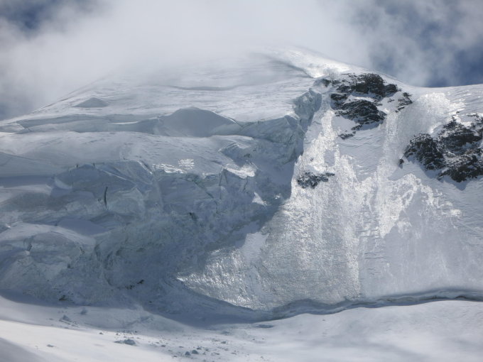 Ein grosse Eisabbruch unterm Silbersattel und viel Getöse aus der Liskamm Nordwand.