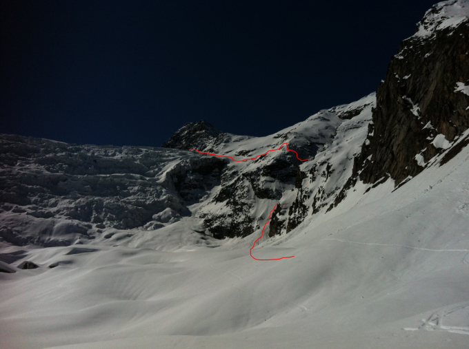 Weisshorn NO Wand, ganz oben Blank, Couloir weiss
