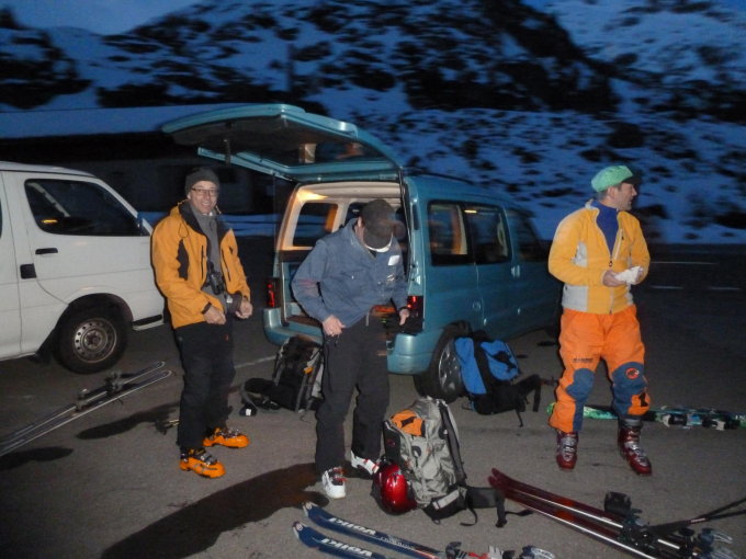 Schnee: Ab Steingletscher noch eine Weile gut. Infolge schlechter Abstrahlung nicht die erwünschte Festigkeit bzw. in der Abfahrt mehrheitlich ruppig. Felsband besser Skitragend queren.