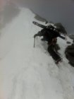 Der Steilhang ab dem Biwak war ganz oben hart, dann mit Winddeckel versehen. Ab 3200 m herrschten dann leichter Bruchharst bis Firnverhältnisse.