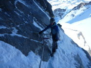 Die Aufstigsroute über die Fixseile zur Düfour ist schön. Kleinere Probleme bieten allerdings die vielen Alpinisten, die einander beim Auf oder Abstieg auf die Füsse und die Seile treten.