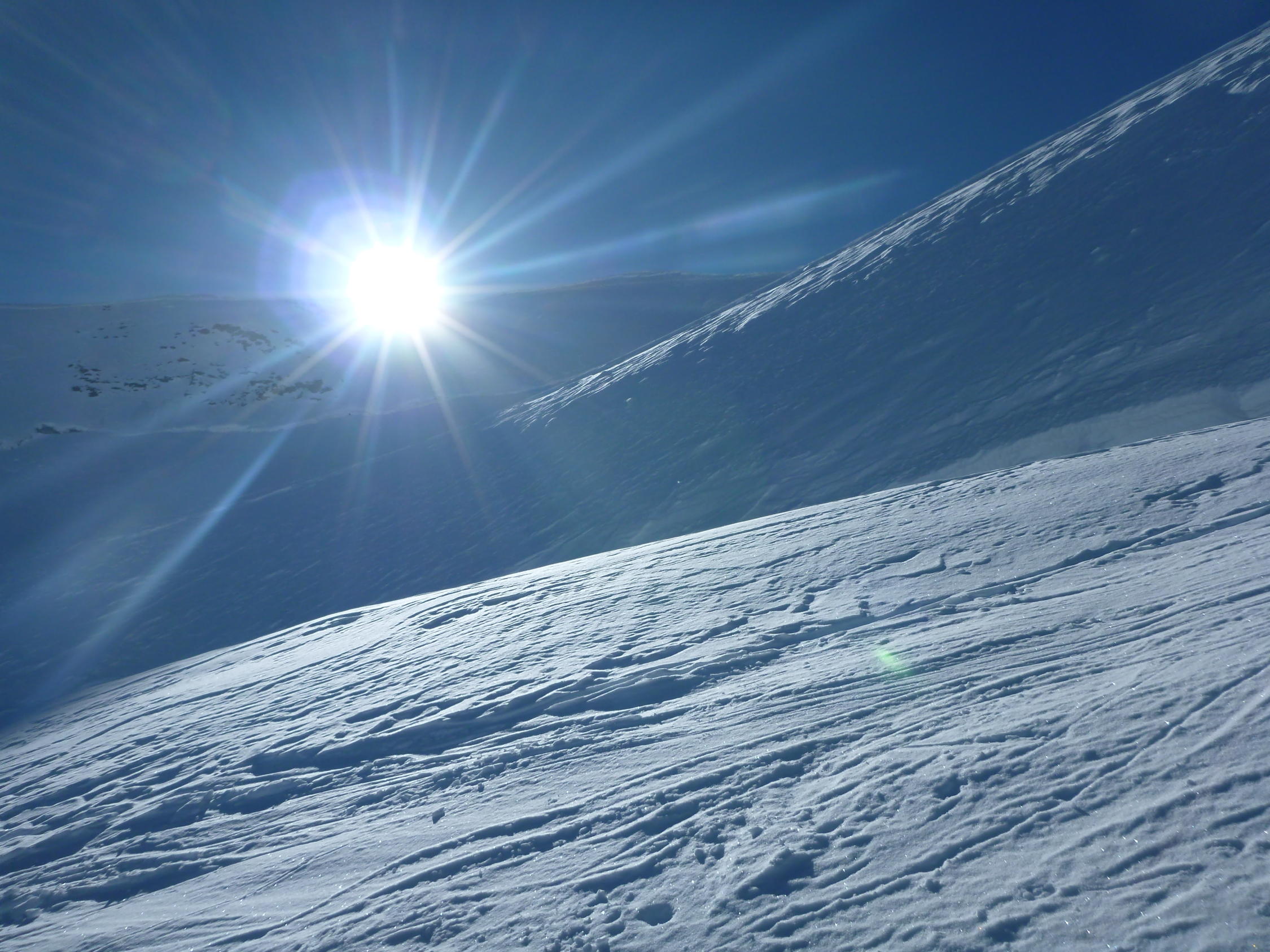 Die Abfahrt erfolgt in gut fahrbarem Frühlingsschnee.