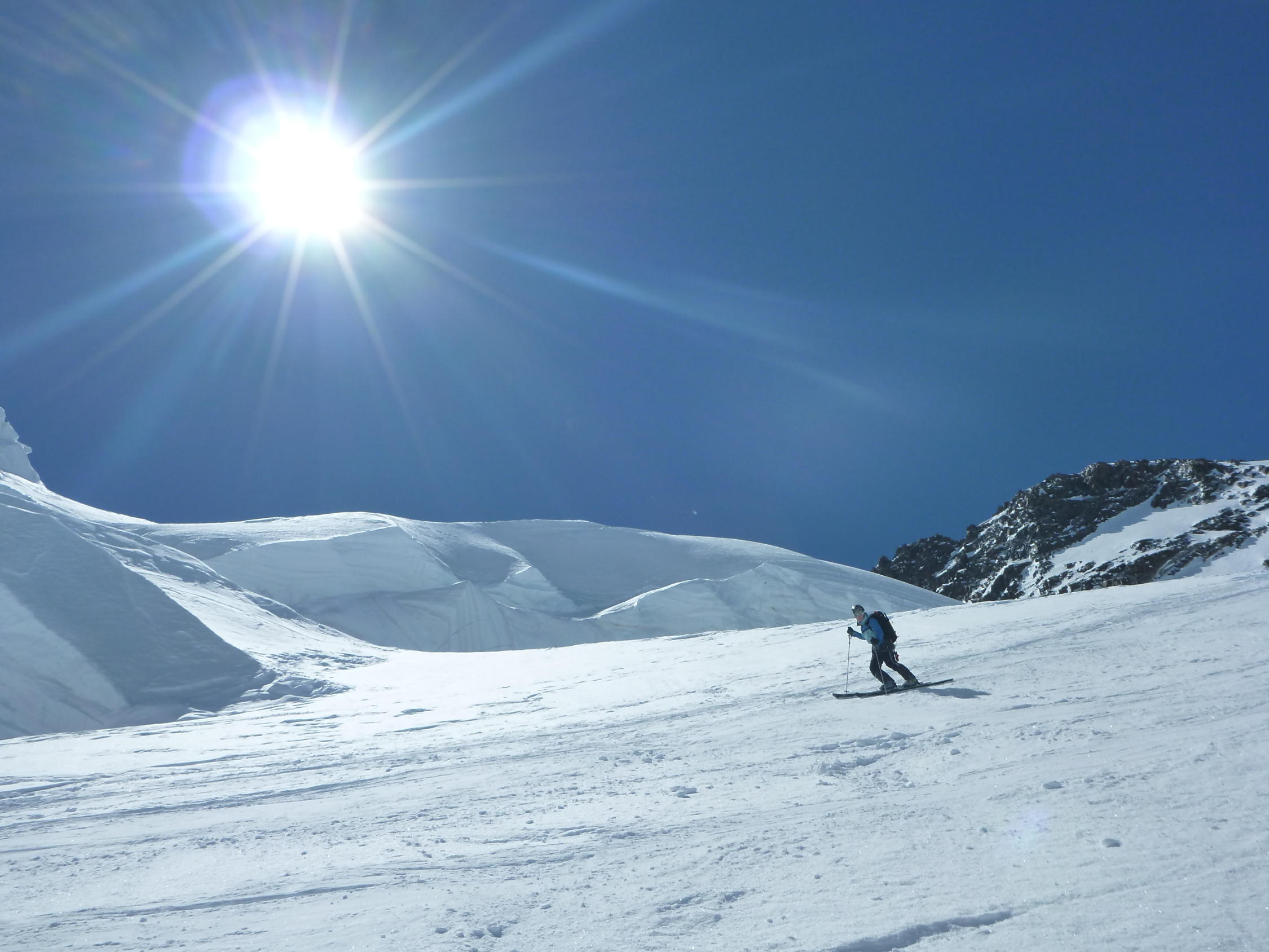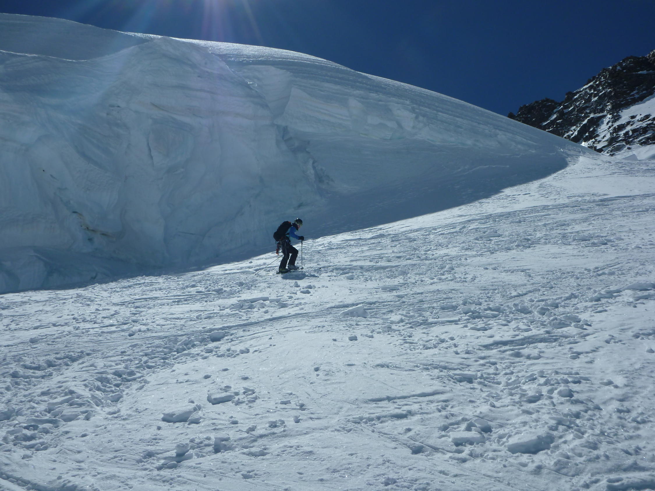 Phantastische Abfahrt beim Schwarztor über den Schwärzegletscher.