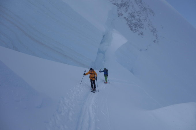Gute Verhältnisse, am Silbersattel etwa 20 cm Pulverschnee, mehrere Varianten auf der Abfahrt zurück zur Monte Rosahütte möglich