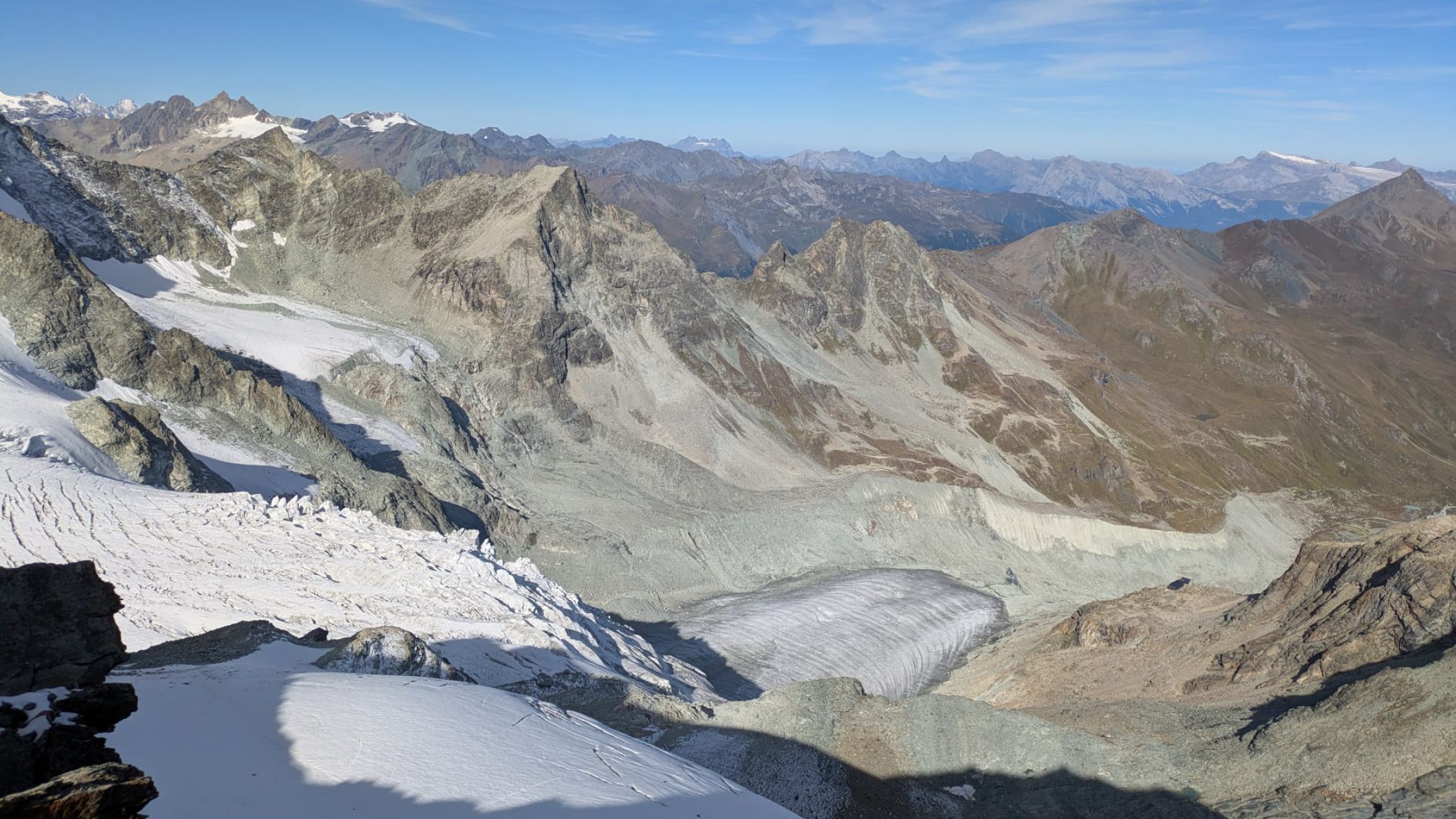 Stiller und wunderbar gelegener Berg im Herzen der Kaiserkrone. Man befindet sich hier über den zwei Traumtäler dem Val de Moiry Zinaltal. Der Aufstieg erfolgte vom Lac de Chateaupré - in den Col du Pigne - und über den NW-grat in schöner Blockgrat-Kletterei WS 1, auf den Pigne de la Lé 3396m.