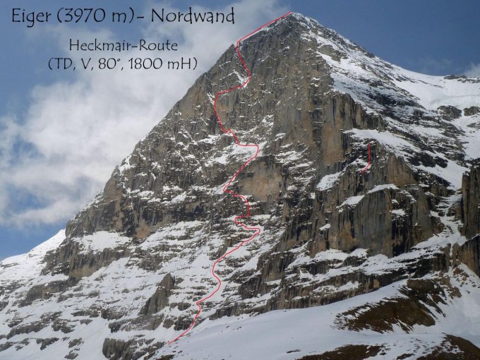 Nach den enormen Schneefällen im Berner Oberland Mitte Mai dürften die ersten Begehungen danach diese Woche am Dienstag und Mittwoch erfolgt sein. Drei Seilschaften in der Wand. Vielen Dank für die großartige Spur an die Seilschaft die vor uns an einem Tag durch ist. Eine weitere Seilschaft mit uns im Todesbiwak.