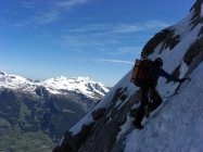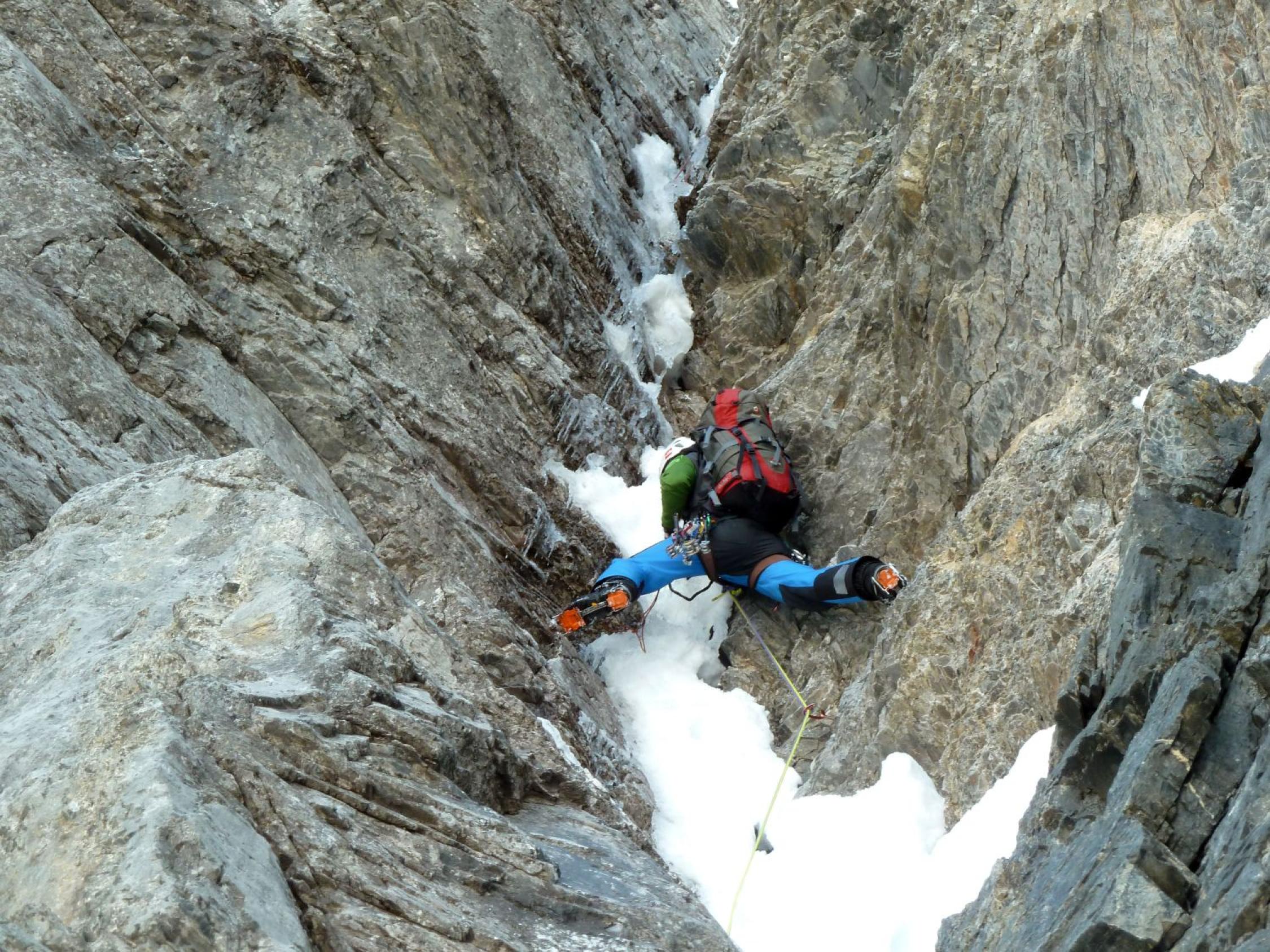 In den flachen Passagen und Eisfeldern perfekter Trittfirn meist mit Stufen zum Treppensteigen. In den schweren Felspassagen dagegen teilweise aber noch etwas vereist oder nass. Insgesamt auf die riesige Wand gesehen aber sehr gute Verhältnisse.