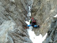 Das Todesbiwak wurde von uns in zwei stündiger Arbeit wieder ausgegraben. Alle anderen Biwakplätze (Schwalbennest, Spanierbiwak, Brüchiges Band, Beginn Götterquergang) derzeit nicht "eingerichtet" und eingeebnet! Teilweise sind hier wie am Todesbiwak bei uns größere Schneemengen zu bewegen!