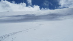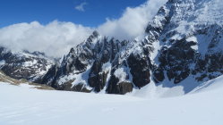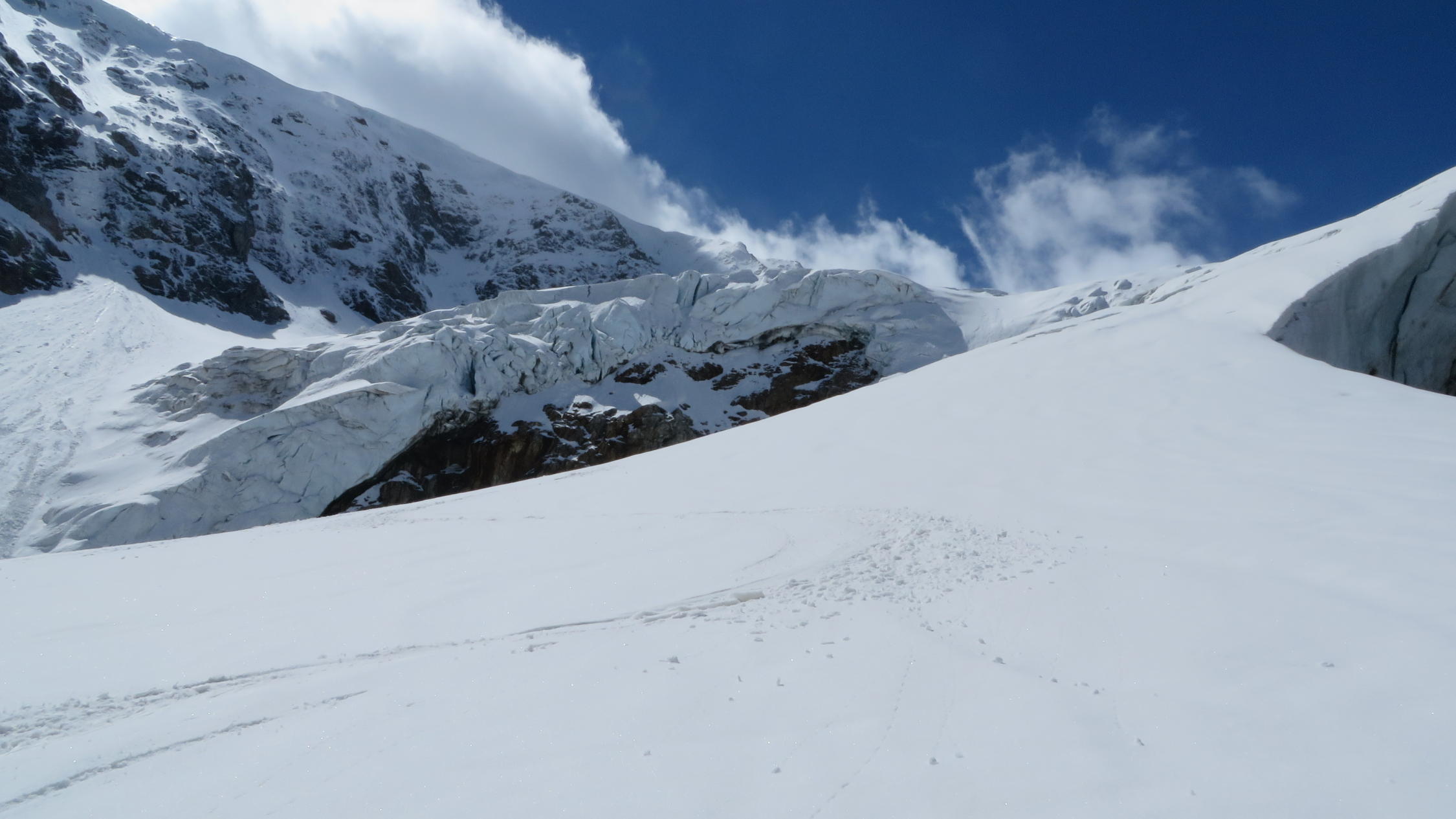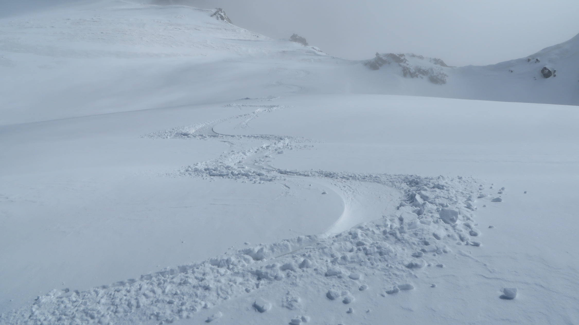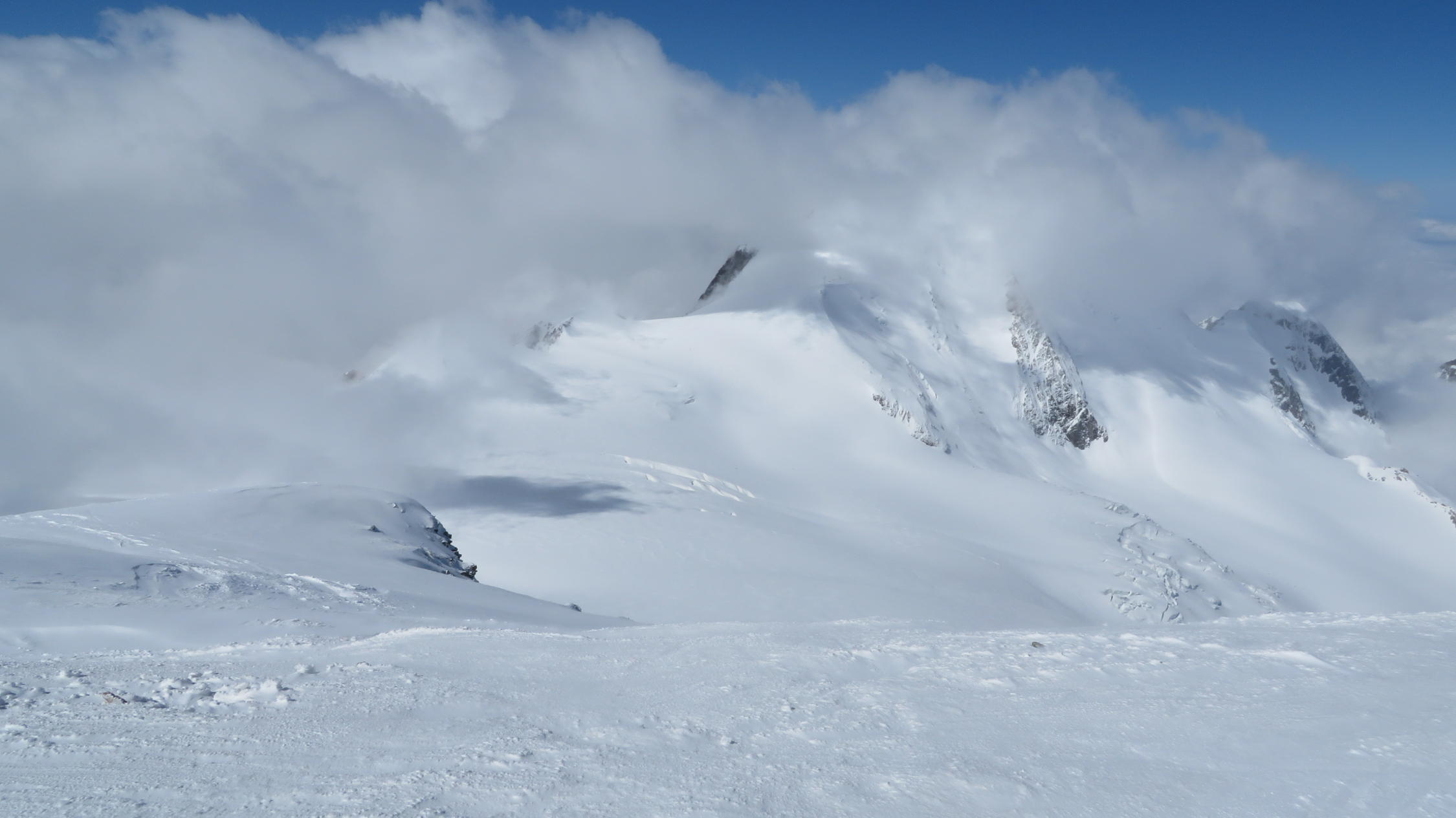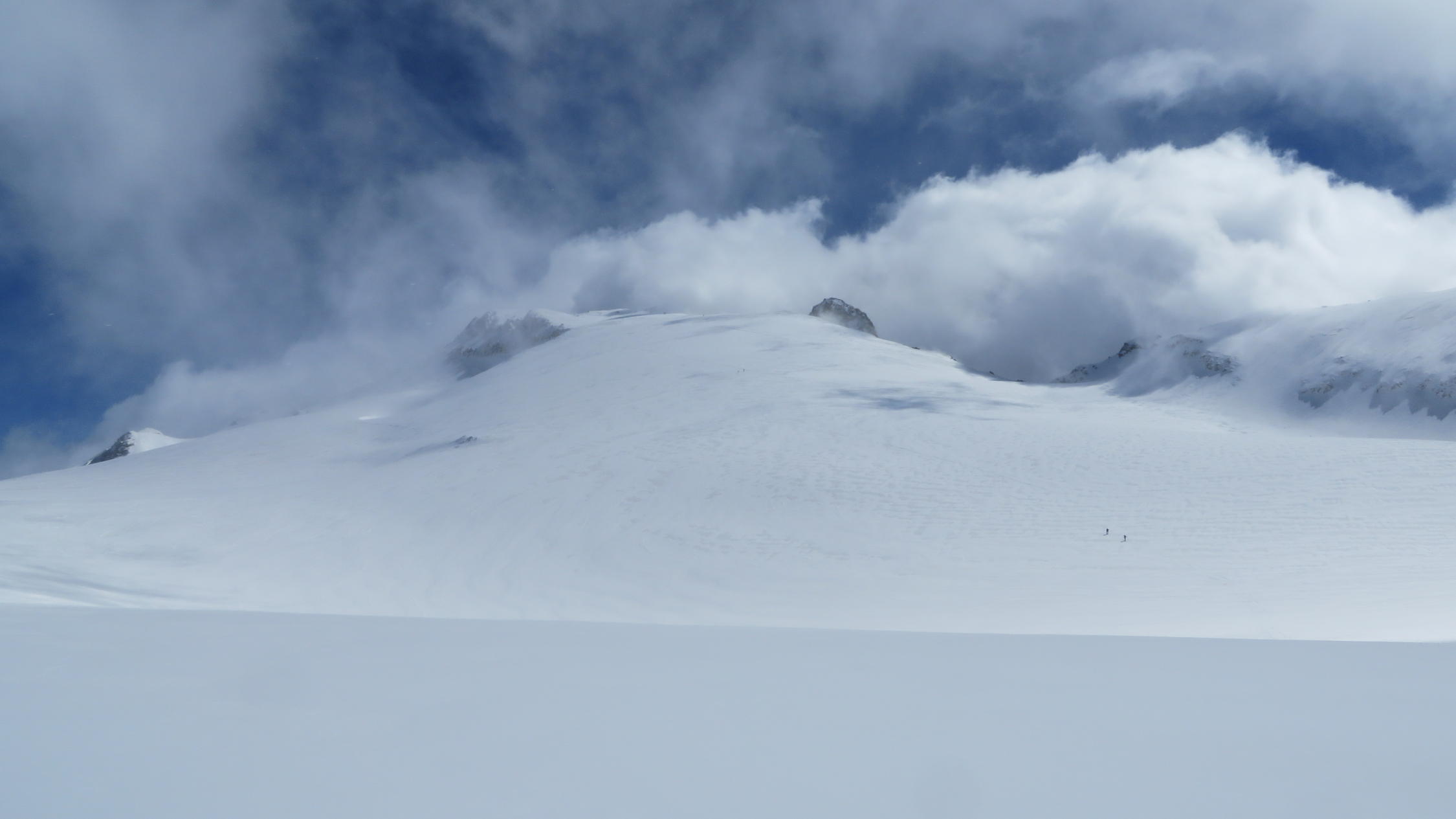 Am Morgen dichter Nebel mit Scneefall bis 3100m mit null Sicht und grossen Orientierungsschwierigkeiten.