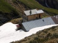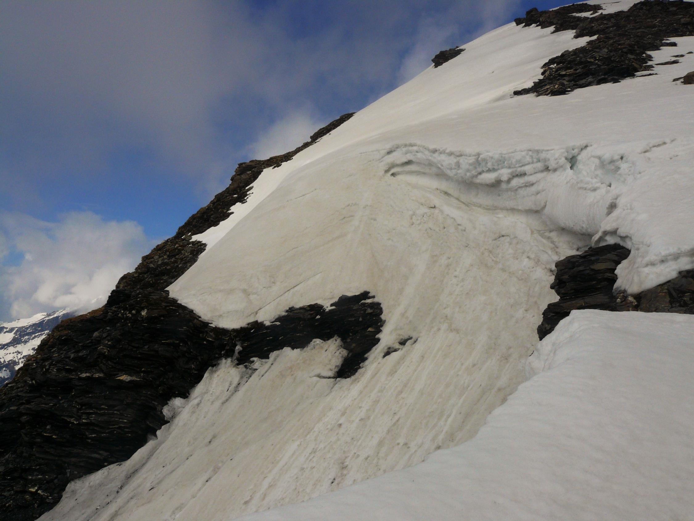 Schnee und Wetter vom Feinsten.Ab Stutzalp-Hütte noch gut gefülltes Couloir, das man von vorne nicht sieht. Abfahrtszeit ca. 10 Uhr perfekt.