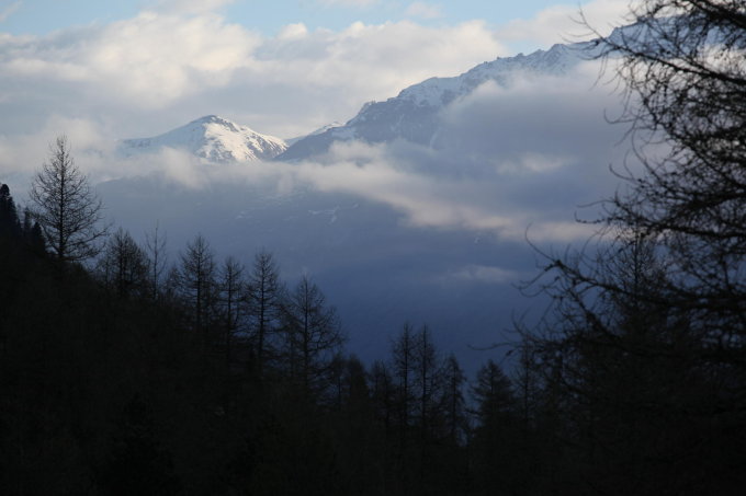 Vom Parkplatz am Ende von Arolla Skis 1 Std. getragen. Empfehlung: mit MTB bis Fahrwegende (spart ca. 2/3 Fussmarsch).