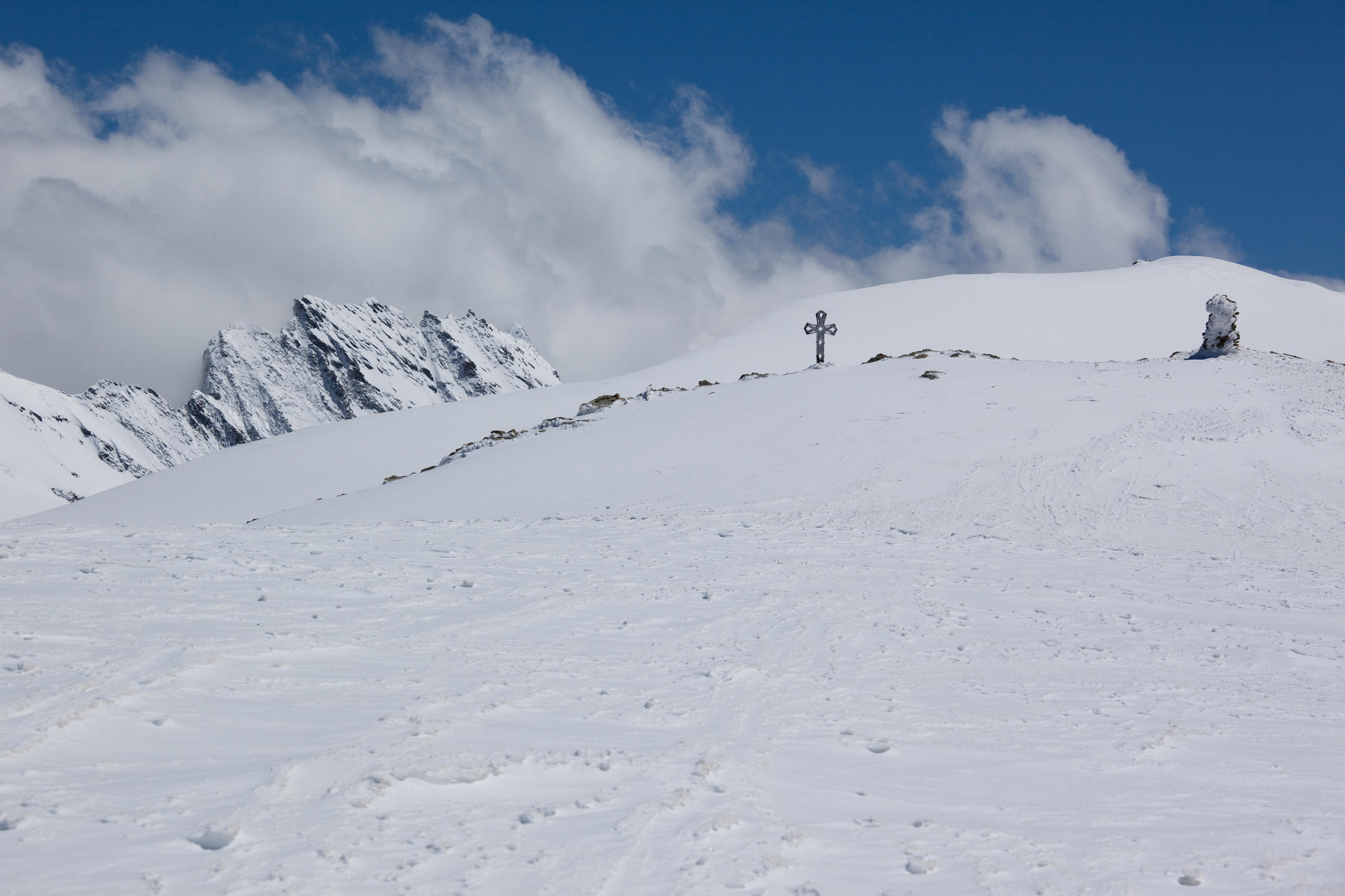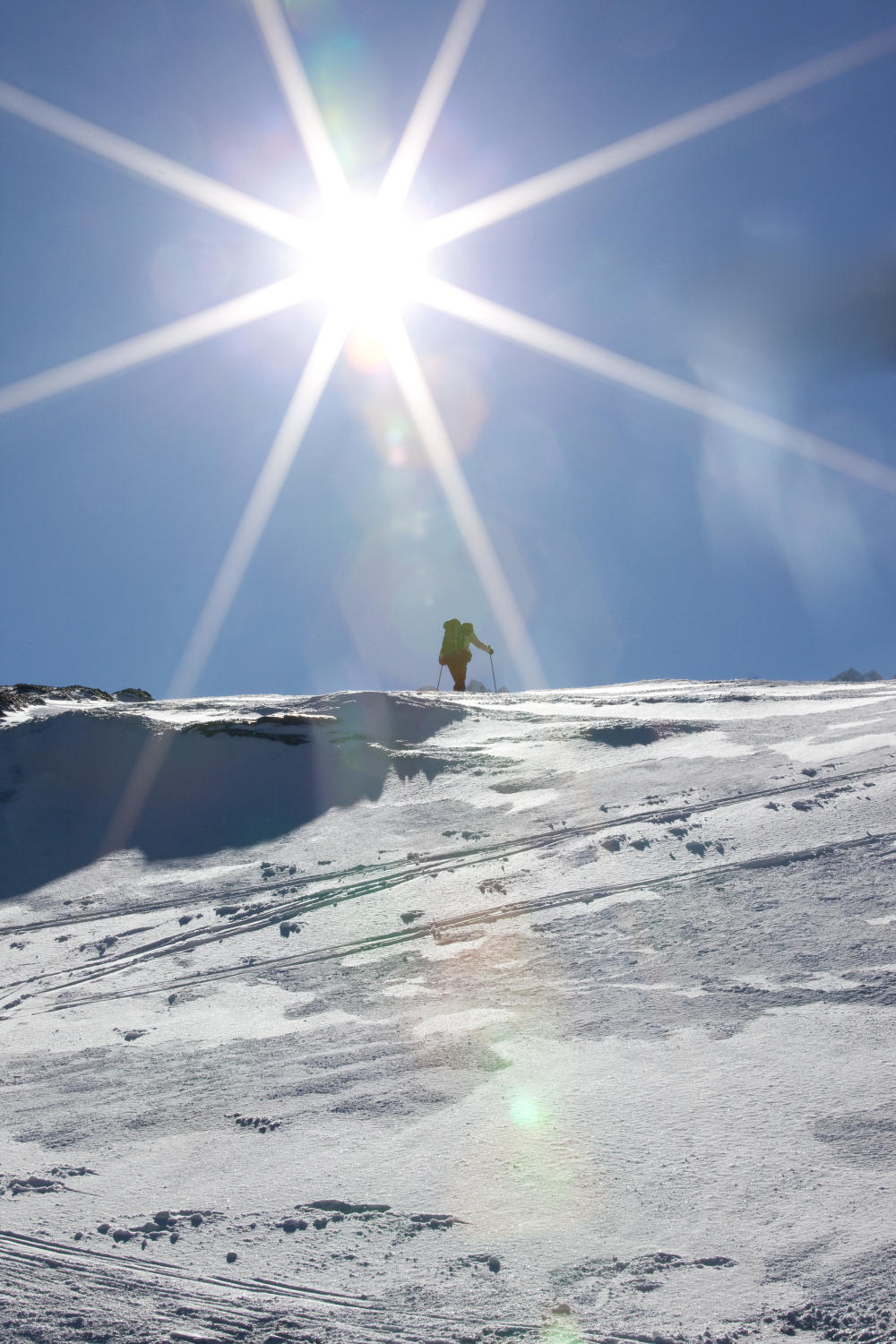 Heute allein am Gipfel, nur noch zwei weitere Tourengeher bis zur Bertolhütte.