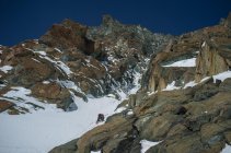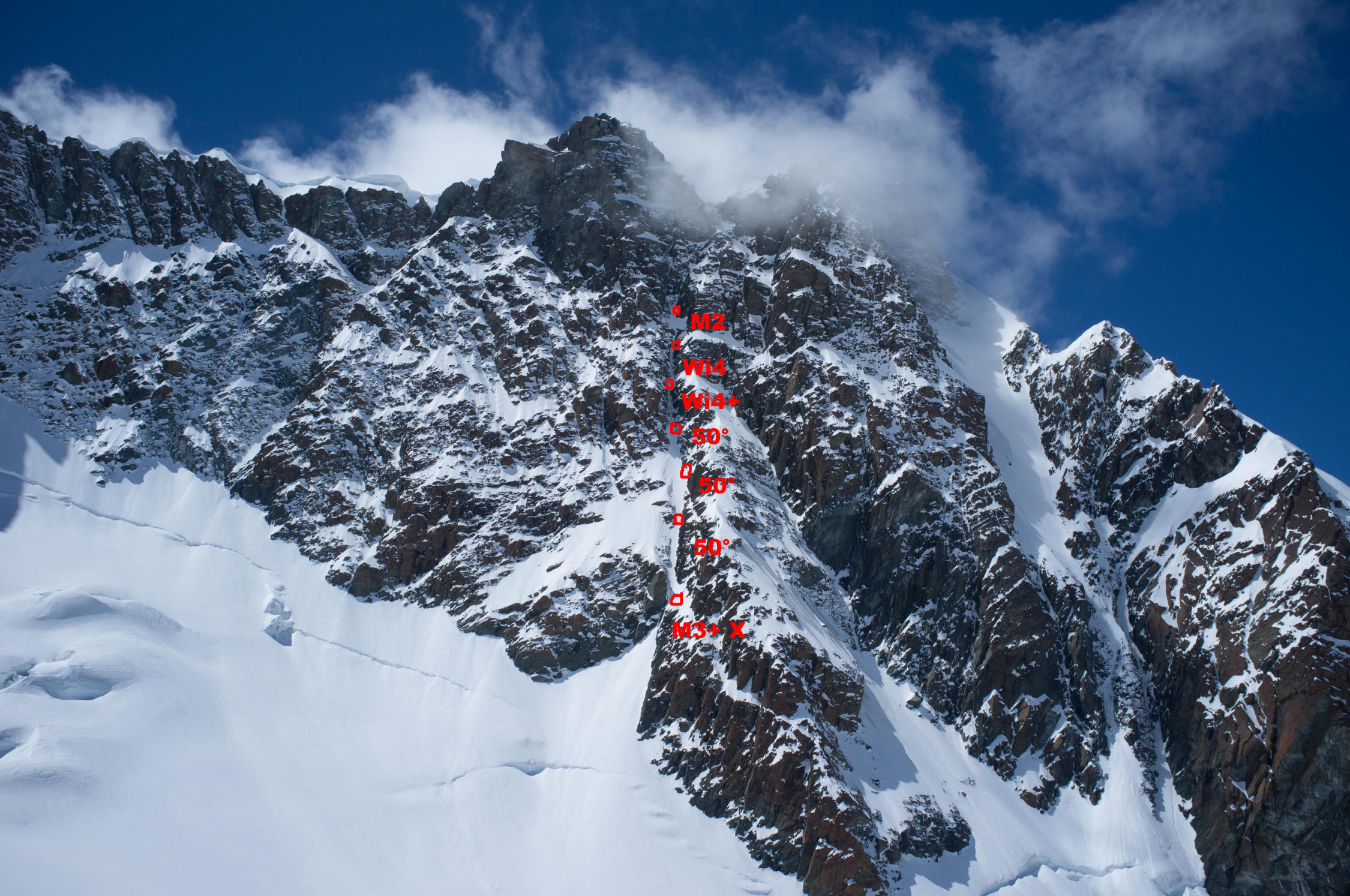 Beste Verhältnisse im unteren Teil! Einstiegslänge zwar mürbes Eis, danach aber bester Trittschnee. Im Eisteil bestes, weiches Nordwandeis, welches immer problemlos absicherbar ist. Leider hat sich dann der Felsteil als deutlich schwieriger als die im Führer versprochenen IV-V herausgestellt, so dass wir umgedreht sind.