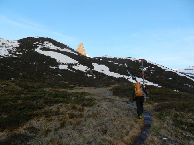 Die Saison ist hier vorbei. Skis bis 1960 müM getragen. Oberhalb 1960 jedoch beste Frühlings-Verhältnisse. Ab 11 Uhr perfekter Sulz von oben bis unten.