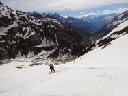 Ab Sustenbrügli ca. 10Min Ski tragen. Bester Firn von unten bis oben. Harsteisen im steilen Gelände empfehlenswert.