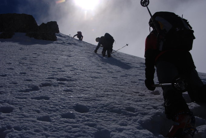 Super gute Bedingungen, vielleicht ober etwas zu hart. Vorsicht!! Der Antelao ist nicht zu unterschätzen. Am gesamten Berg ist Absturzgefahr. Nur für sehr erfahrene Schitourengeher! Die Bedingungen müssen bestens sein!