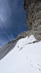 Beim Aufstieg zum ersten Gletscher tendenziell eher an der Wand bleiben, dann muss man nicht so weit absteigen.