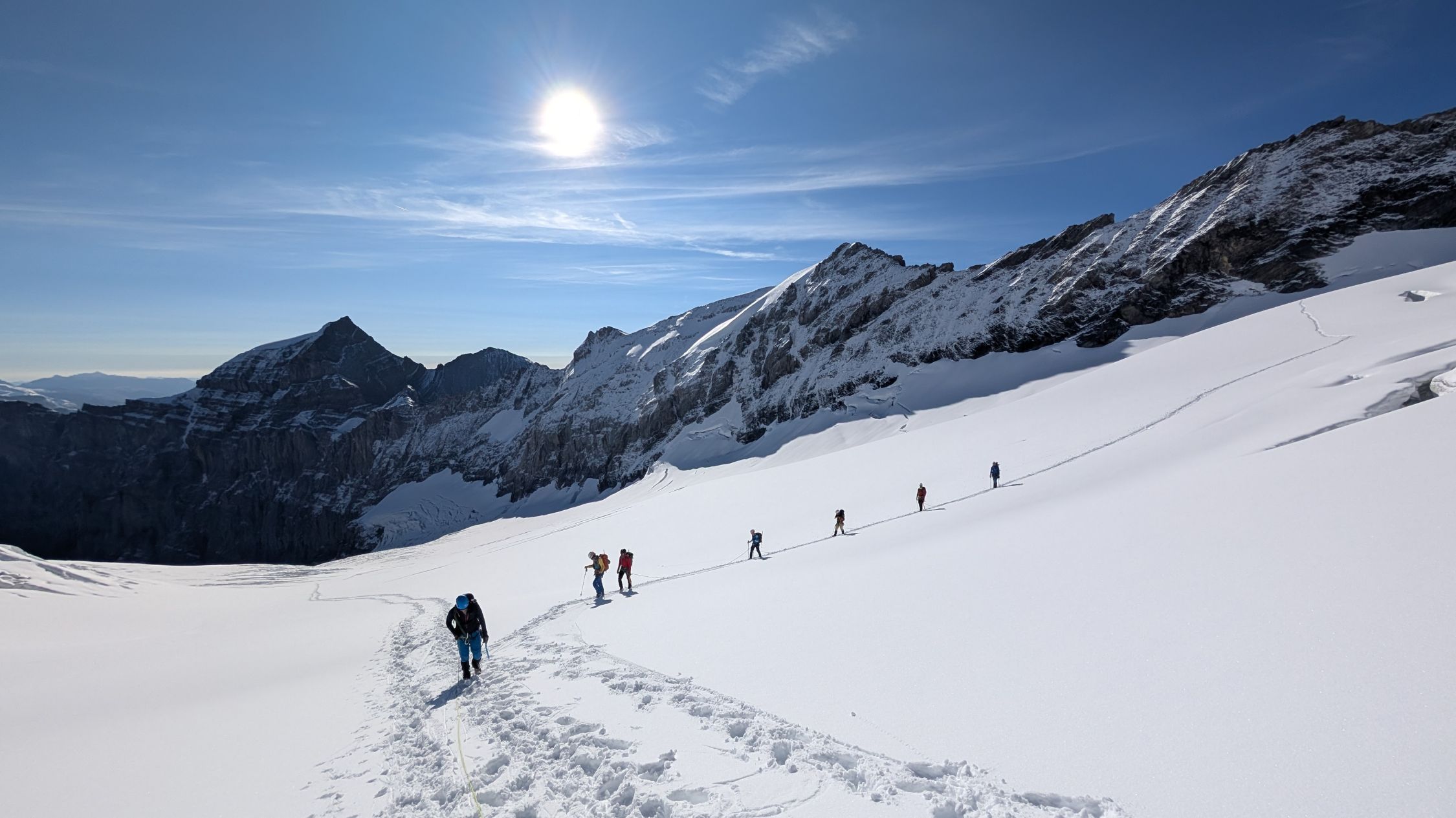 Schneeauflage auf dem Gliems-Gletscher macht die Sache deutlich einfacher, weil der Gletscher doch recht steil ist.