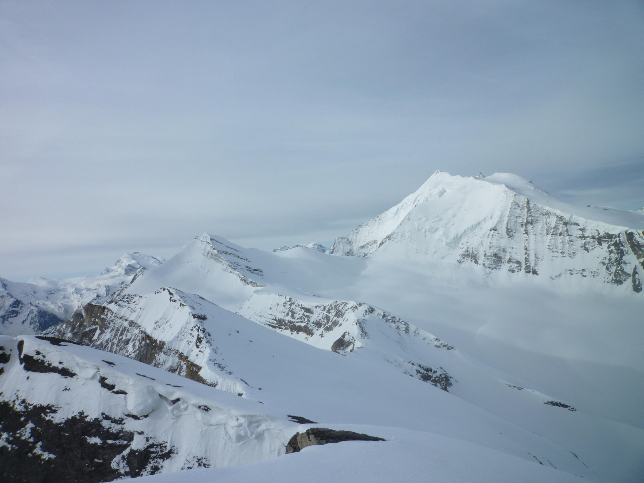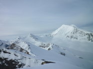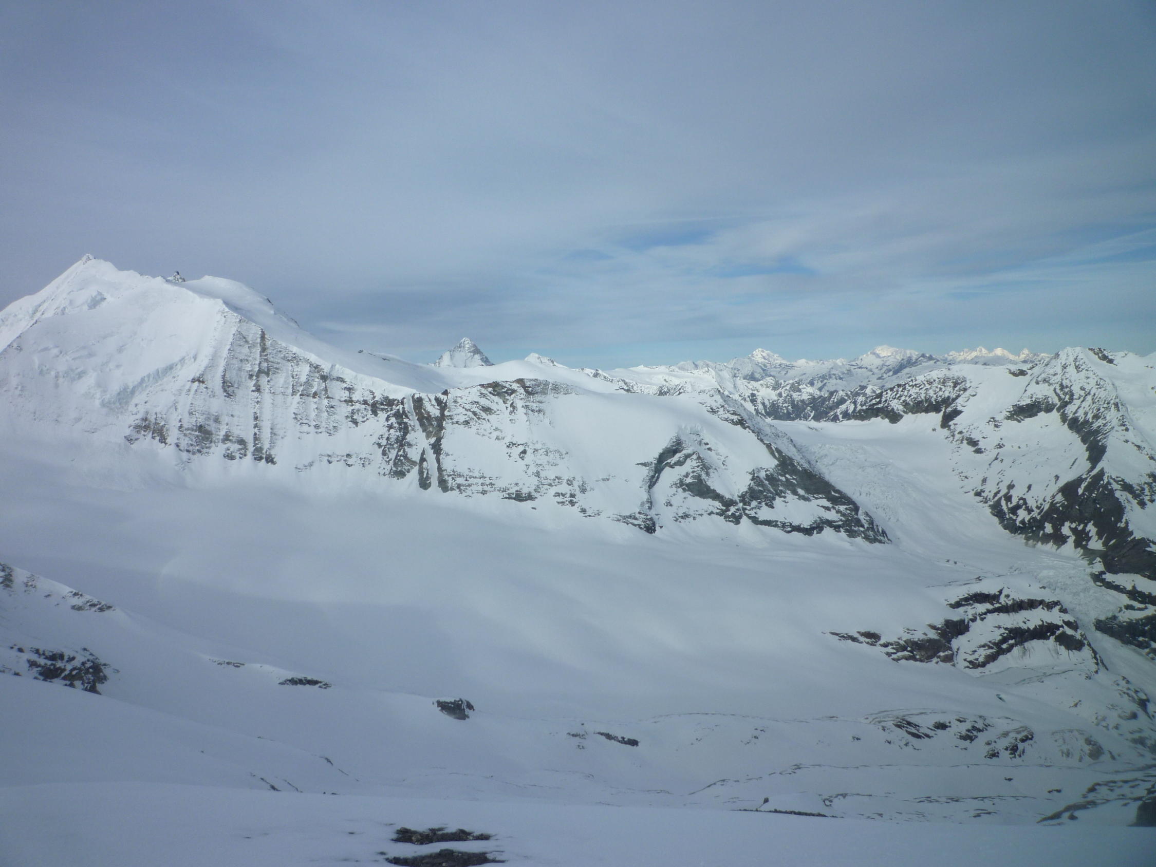 Bishorn autobahnähnlich eingespurt. Weisshorn Nordgrat am Grat noch Wächten, Ostgrat noch recht eingeschneit (noch etwas früh?).