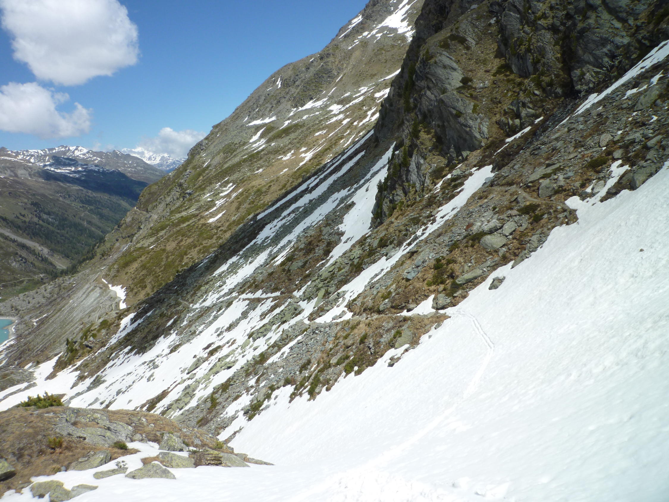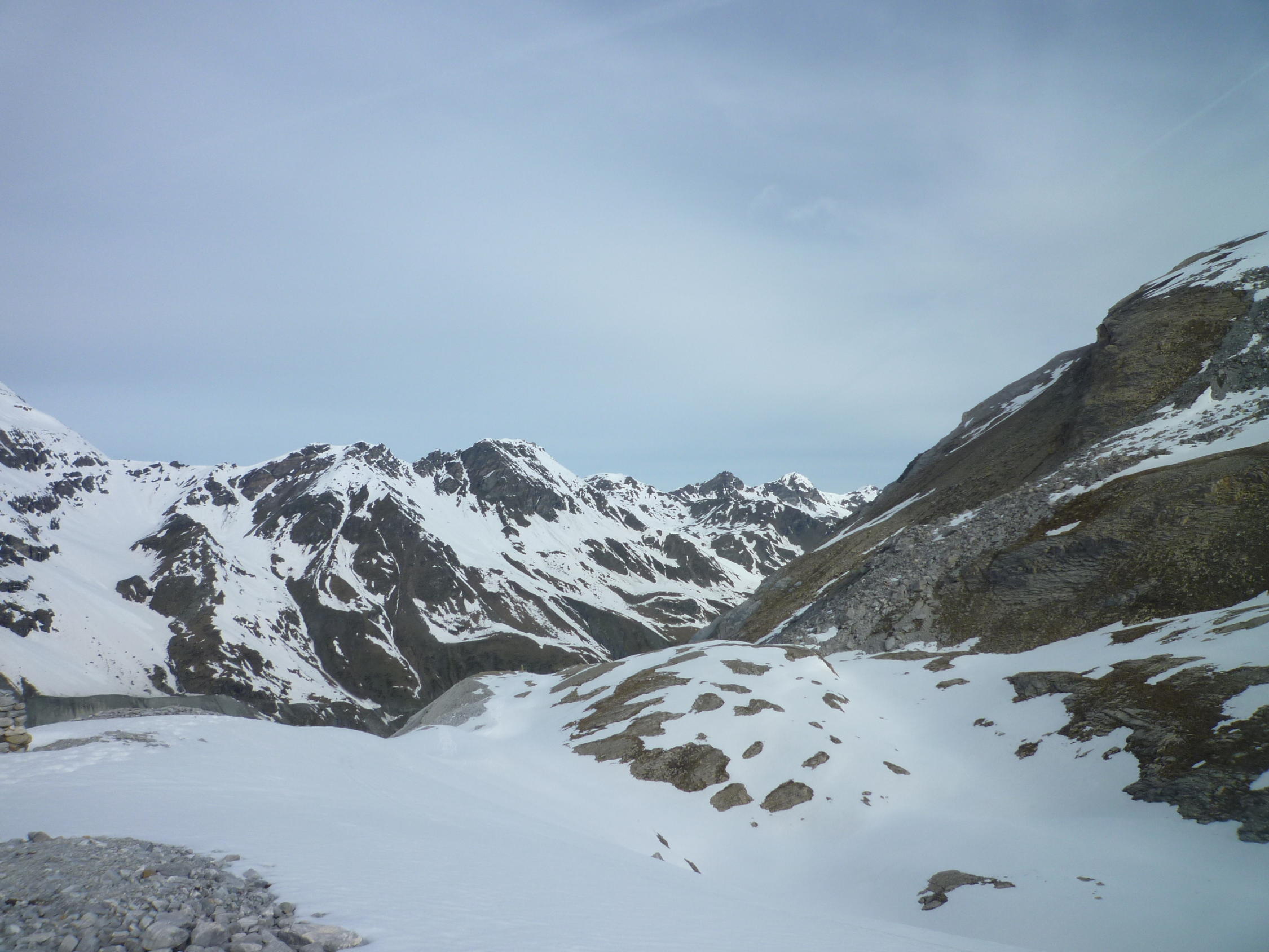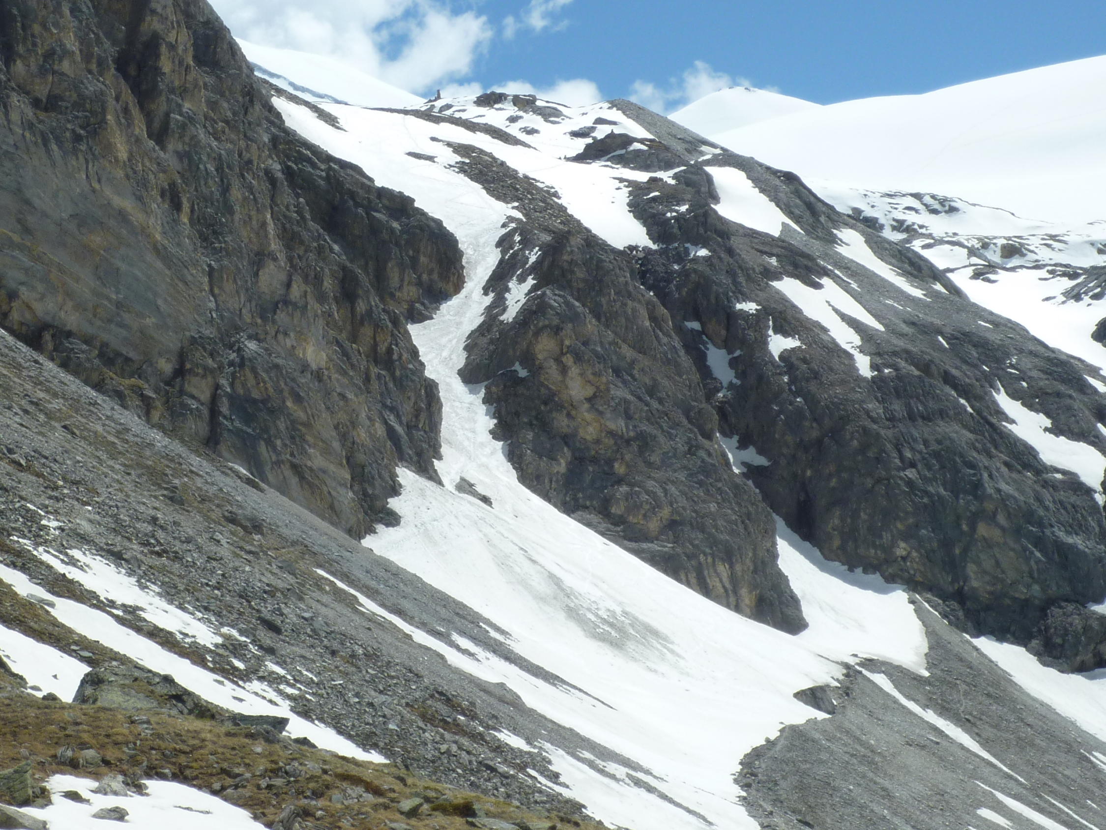 Klassische Tourenroute wie beschrieben mit Skis nicht mehr möglich. Ab Couliour Gässi folgt man dem Sommerweg und peilt zunächst das Innere Barrhorn an. In Spitzkehren geht es bis Unterhalb des Inneren Barrhorn und quert leicht ansteigend Richtung Üsseres Barrhorn.