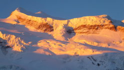 Aufsteig zum Col de Corbassiere zu Fuß. Gifelaufsteig ca. ab 3650 mit Steigeisen. Abfahrt vom Gipfel in der harten Westflanke.