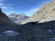 Gesamttour zeittechnisch unterschätzt, Ursprungplan weiter Überschreitung zum Altels zeitmässig nicht machbar. Abstieg über Zackengrat (Steigeisen nicht mehr zwingend) danach über die endlosen Schotterhänge bis ins Sunnbühl, noch knapp das letztä Bähnli ins Tal erreicht.