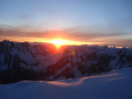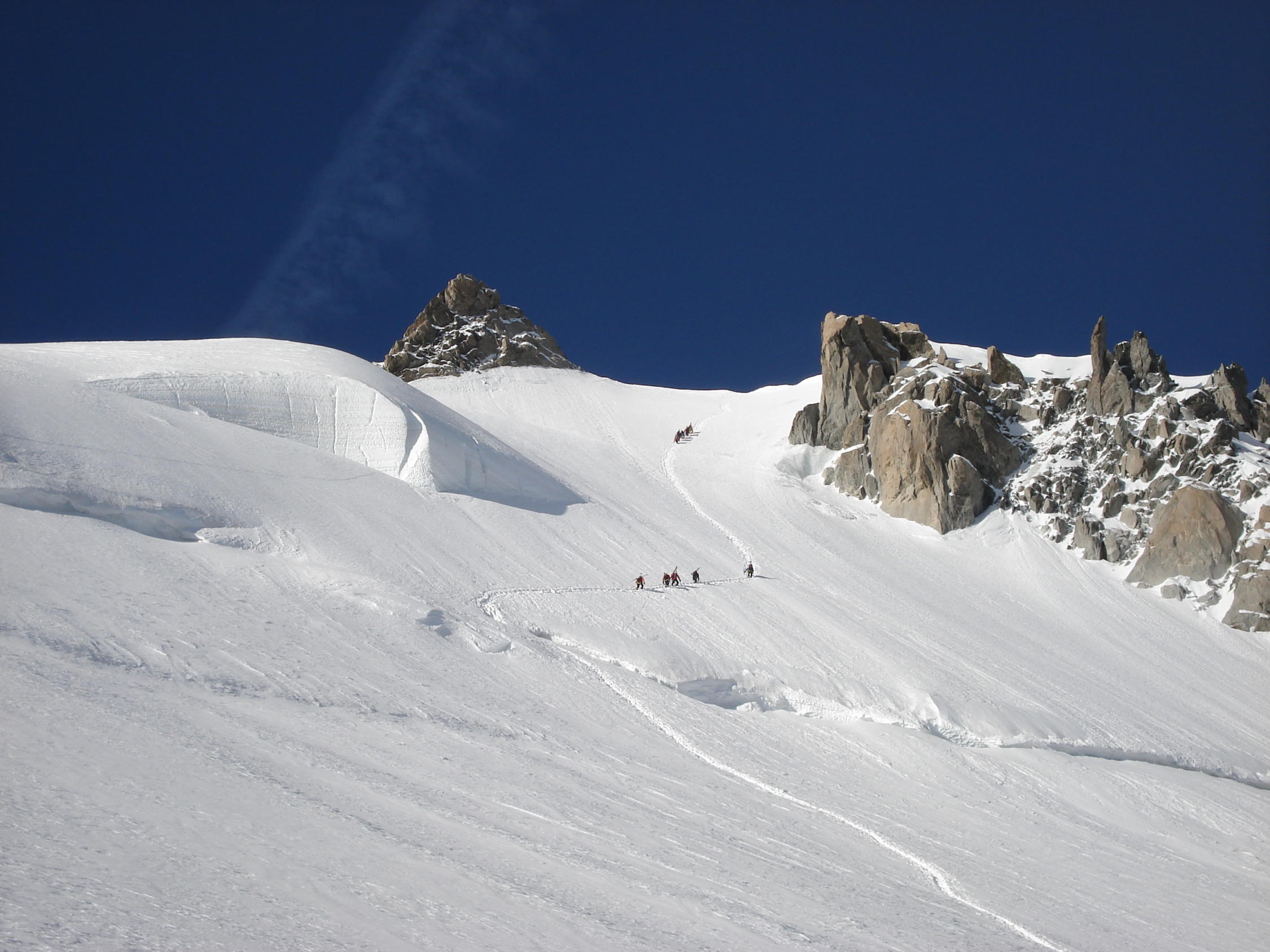 Die Verhältnisse waren heute einfach super für diese Tour, der Neuschnee der letzten Tage hatte auch vorteile.Start um 3 Uhr45 bei der Refuge des Cosmiques, Aufstieg Tacul gute Aufstiegsspur beim